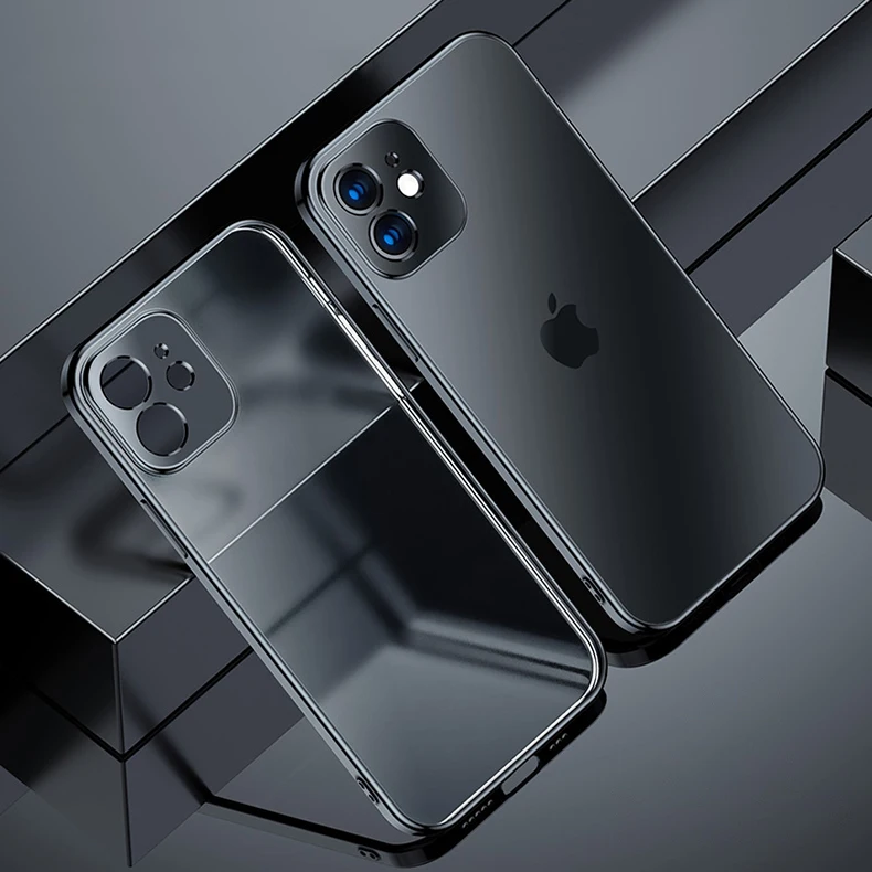 Прозрачный чехол с квадратным покрытием и рамкой для iPhone 13, 12, 11 Pro Max, X, XS, XR, 7, 8 Plus, роскошный Силиконовый противоударный прозрачный чехол мини