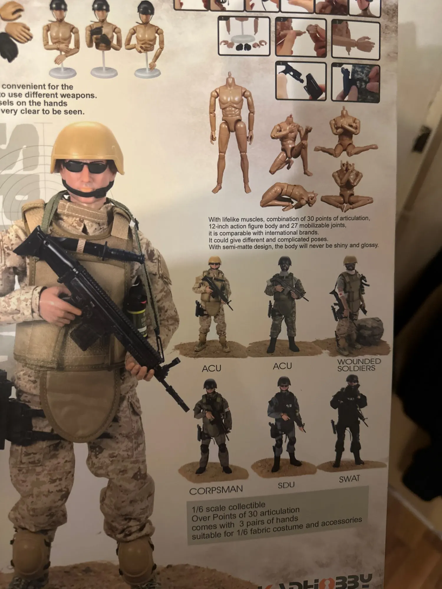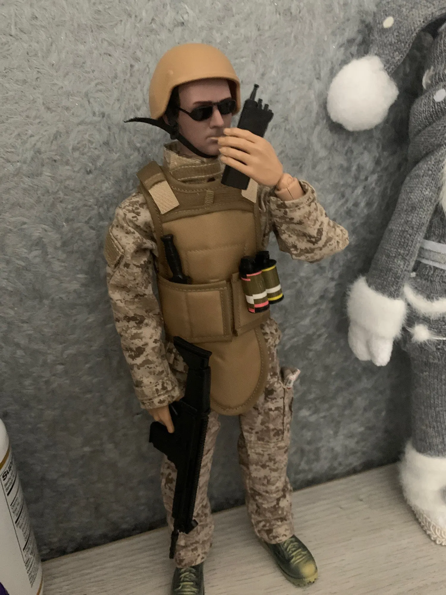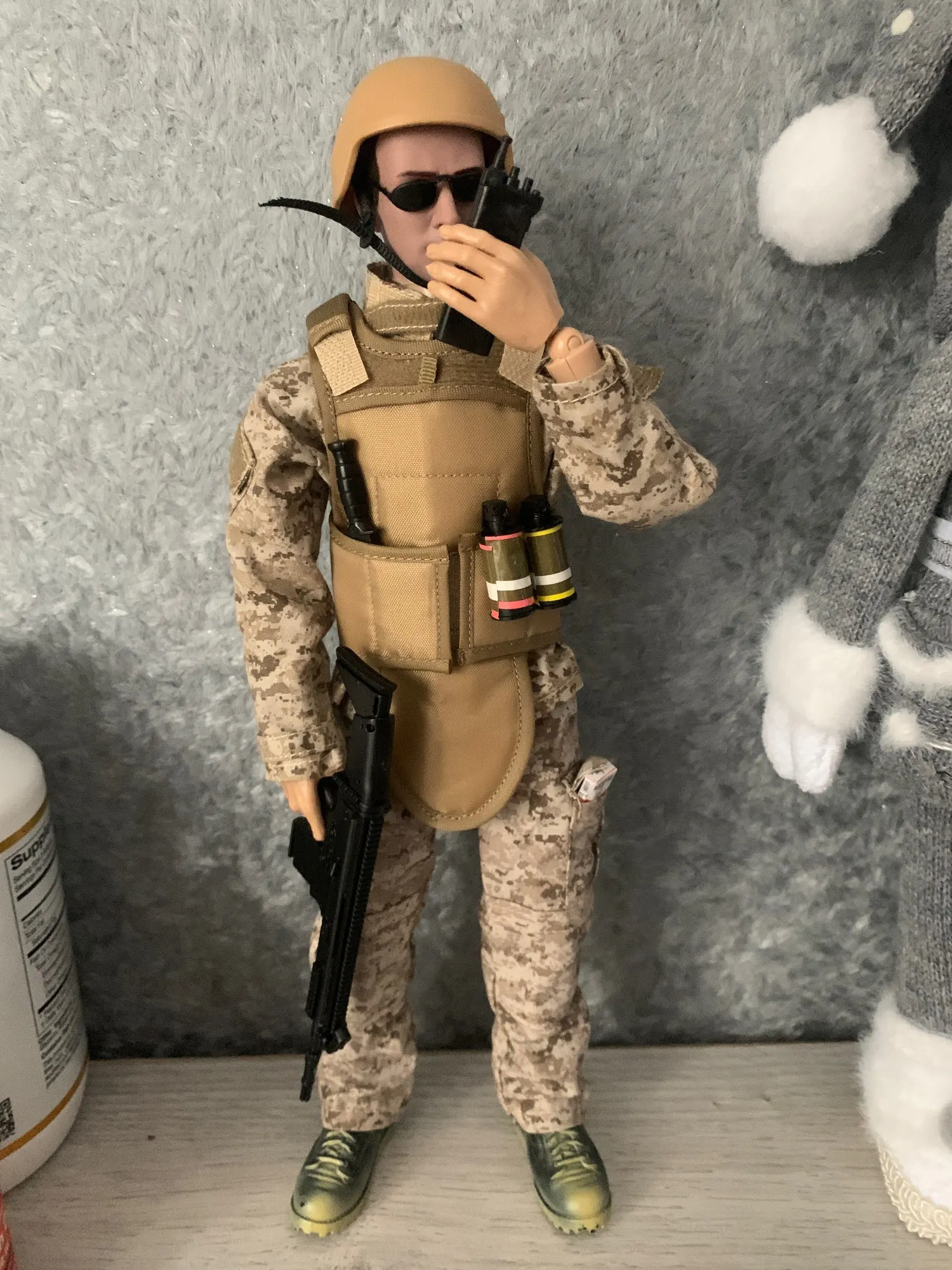 Хорошее качество, полный шарнирный фигурка героя, около 30 см (1/6), высокая, полностью оборудованная, боевая униформа, анти-жилет пули, различных наборов руки, 1 Штурмовая винтовка, МП, melee нож, пара гранат и бумажные аксессуары; Можно использовать с различными нарядами от других фигур человека действия. Быстрая связь и активность от продавца, около 10 дней Доставка во Францию, мой племянник рад Рождеству, я тоже