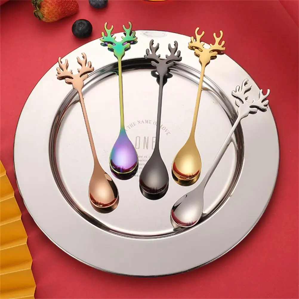 5 шт.компл., 5 цветов, ложка-мешалка из нержавеющей стали в форме головы оленя