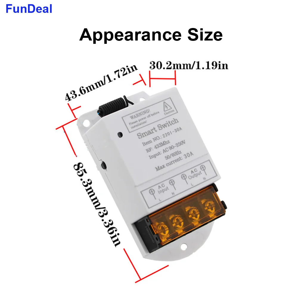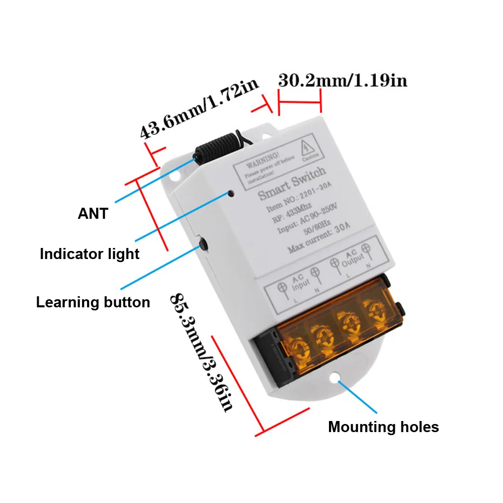 Max Load30A Relay, Resistive load≤25A, Inductive load≤20A
