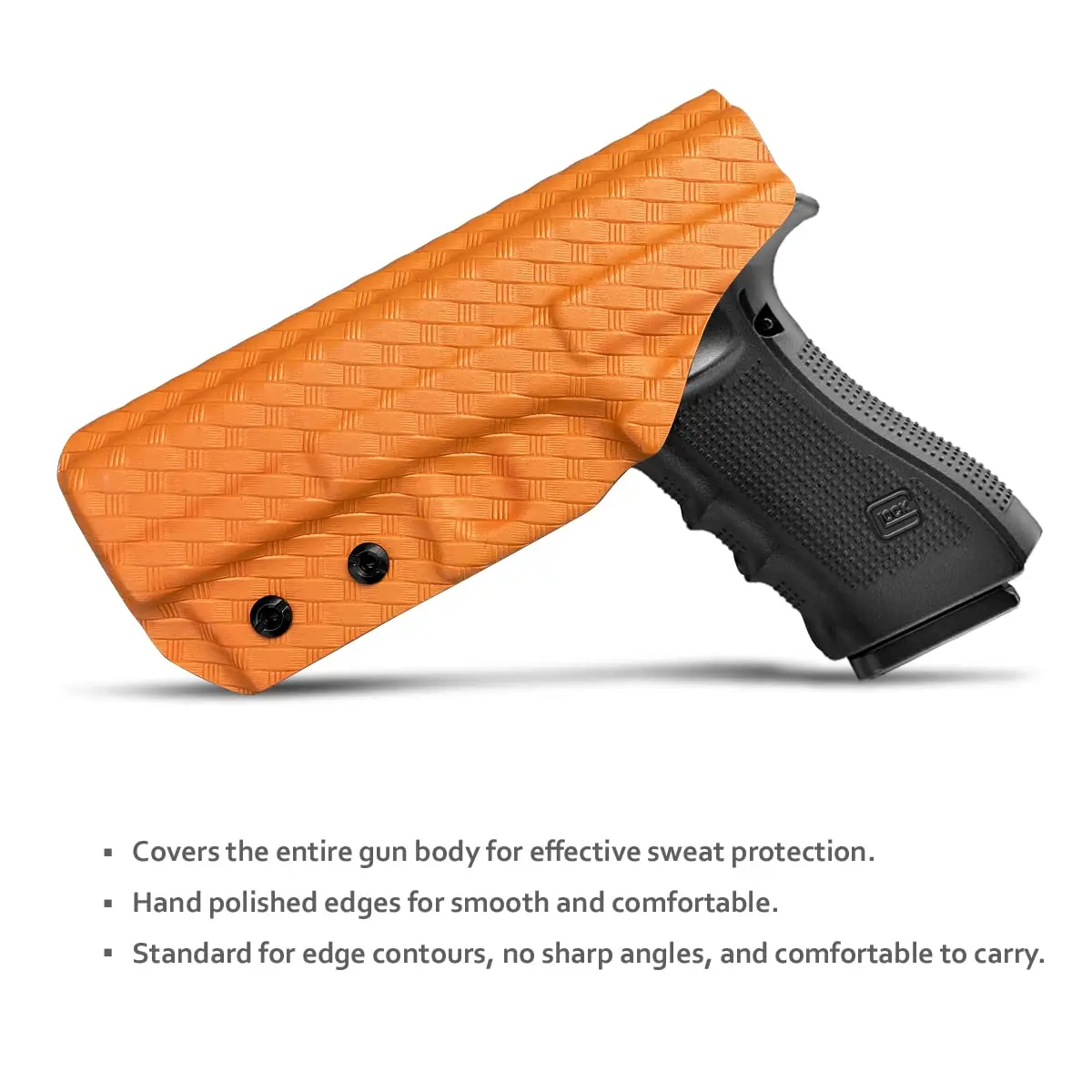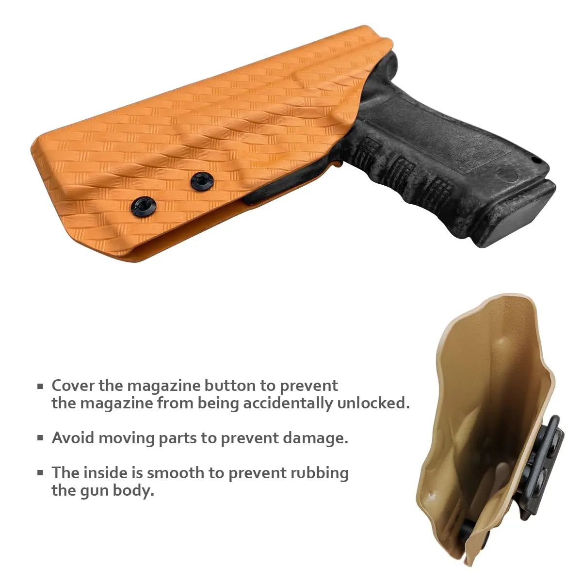 US .08 ”углеродное волокно KYDEX ручной работы: легкий, прочный, прочный, влагозащищенный и моющийся, обеспечивает комфорт и уверенность в любой ситуации. Чехол Glock 17 покрывает весь корпус, эффективно предотвращая пот и избегая фиксации одежды, можно безопасно и безопасно использовать.