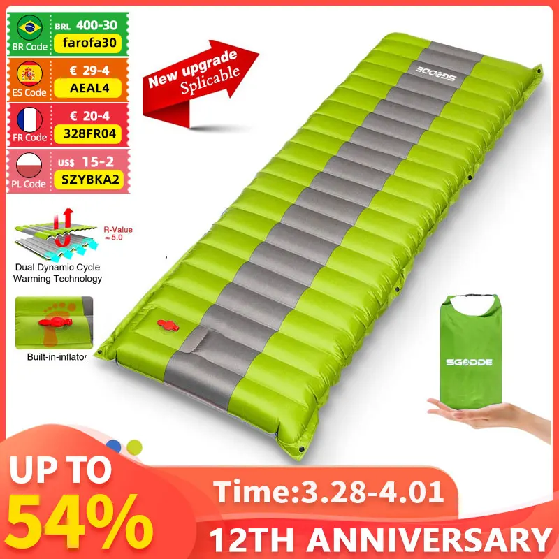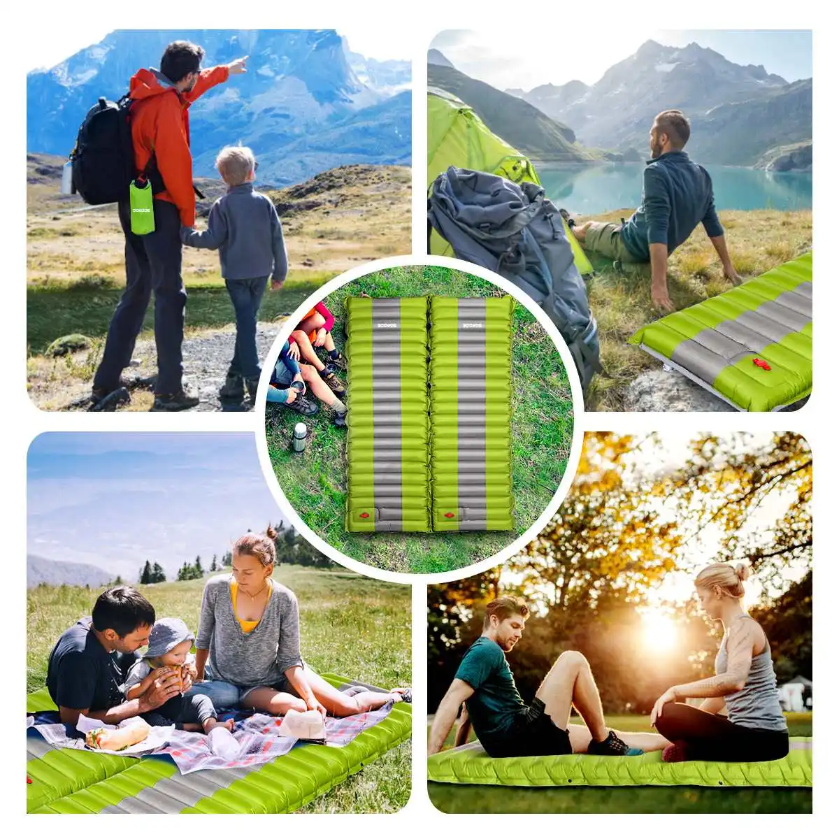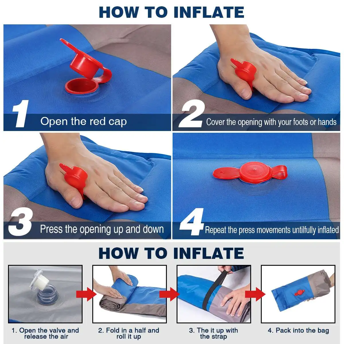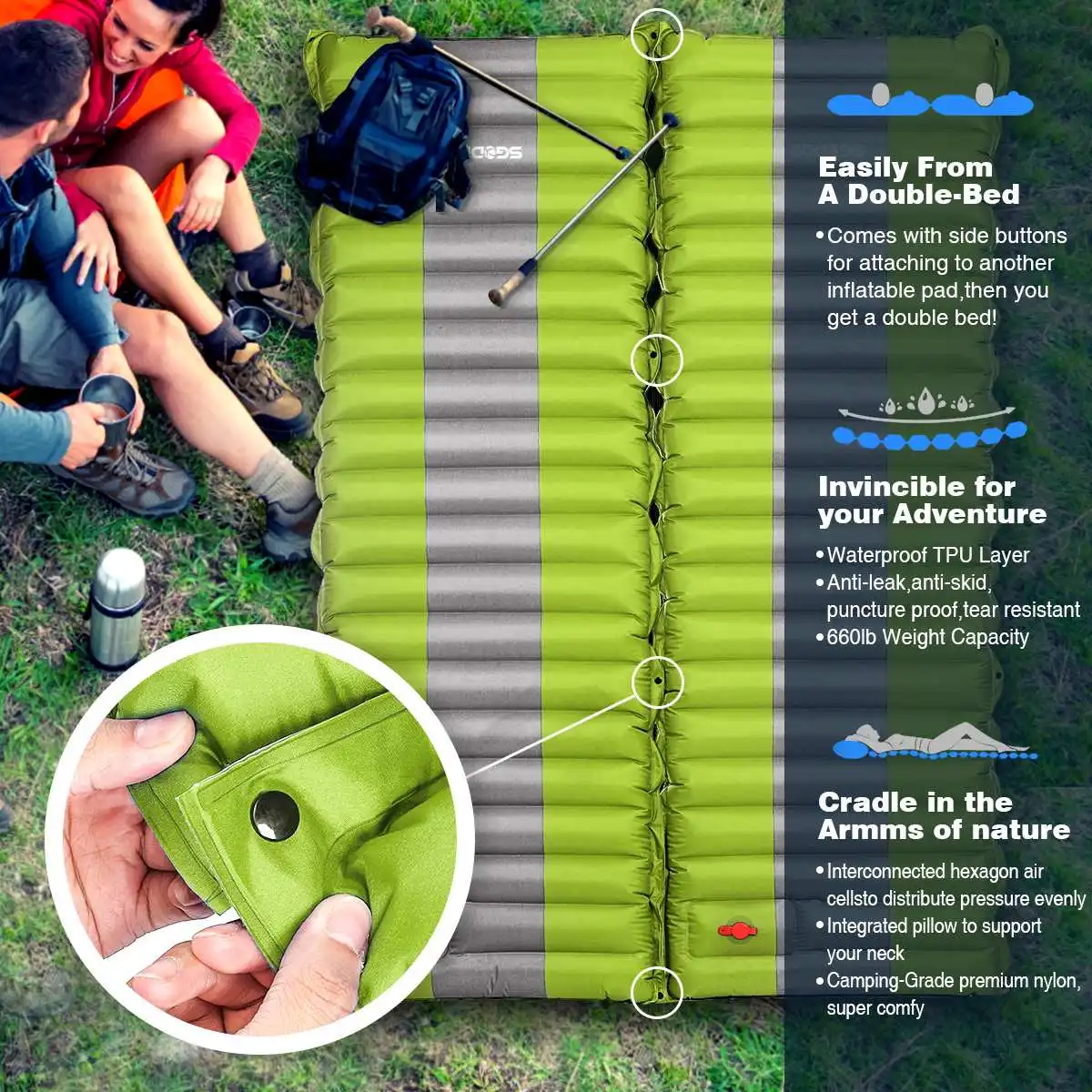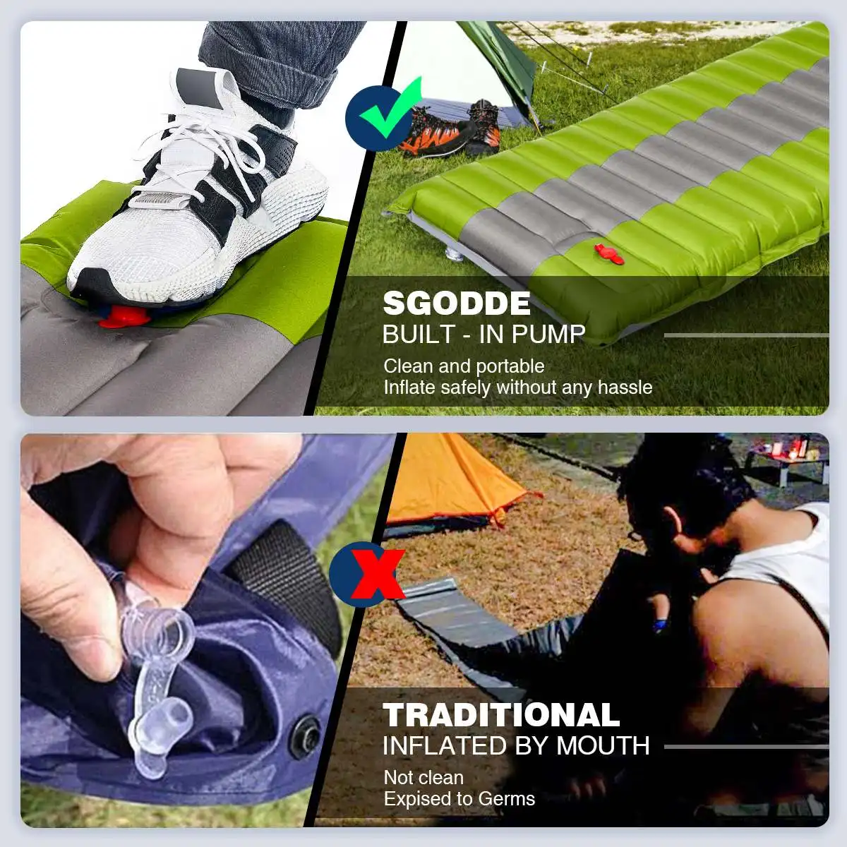 1. 【Встроенный в тыкве 】Может быть двуспальная кровать! Поставляется с боковыми кнопками для крепления к другой надувной подушечке, чтобы получить двуспальную кровать.! Намного проще в использовании! Не продувать свой надувной матрас ртом больше! Наш кемпинговый матрас оснащен встроенным насосом для ног, так что вы можете надуть коврик в течение всего 3 минут. Одна нога ступит на отверстие, другая шаг в один шаг от отверстия. Повторите это, и это сделано! Также легко сдувается-просто выньте пробку, которая может эффективно надувать.