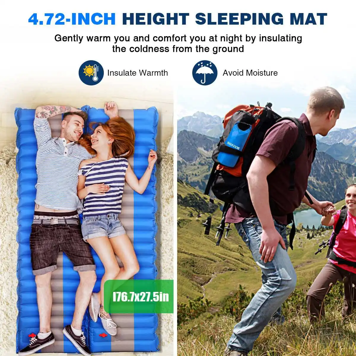 2. 【Удобный и компактный 】Дайте вам самый легкий коврик для сна без ущерба для любого комфорта. Наши коврики для кемпинга имеют внешний вид волнистой поверхности и увеличили толщину до 4,72 '', чтобы дать вам комфорт, как дома. Он изготовлен из водонепроницаемого, прочного и износостойкого материала, конструкция поверхности трубки подходит для изгиба тела, подарит вам хорошую ночь даже в Вашей походке на свежем воздухе. Больше нет боли в спине или раздражающего дискомфорта.