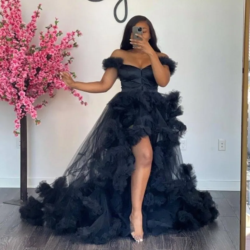 Модные черные платья с длинными оборками, а-силуэт, пушистое Элегантное Вечерние чатое вечернее платье для детского праздника, Тюлевое платье невесты