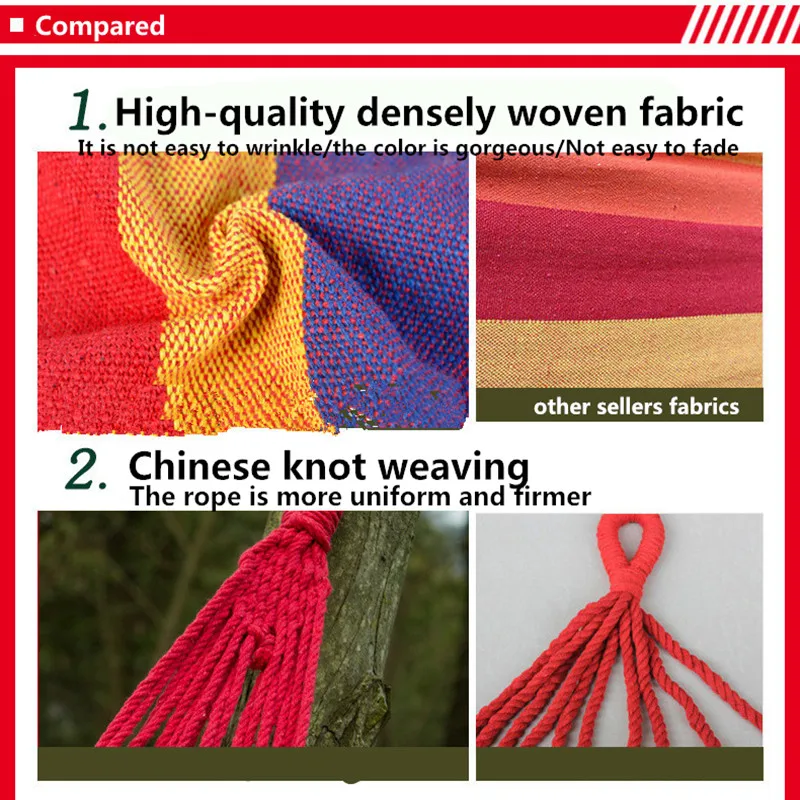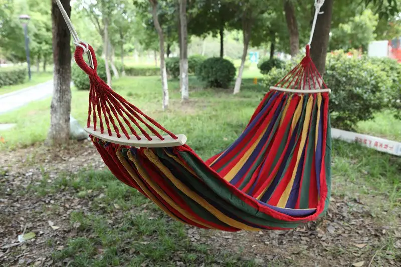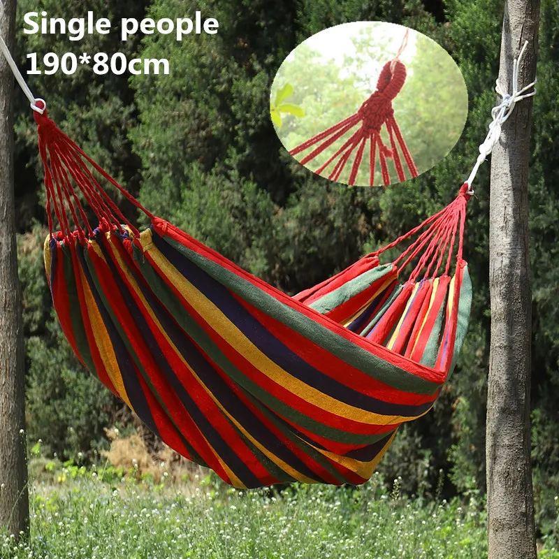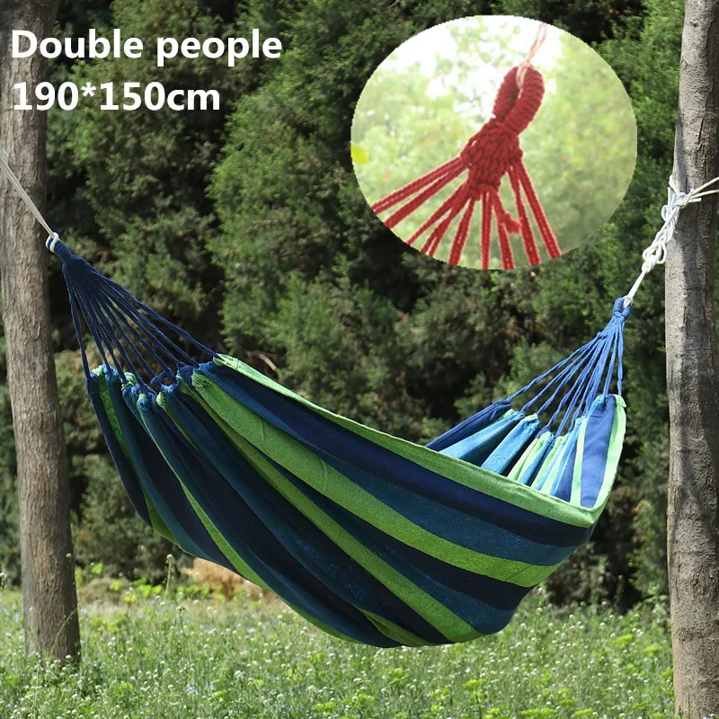 Портативный гамак, уличный гамак, для сада, спорта, дома, путешествий, качели для кемпинга, подвесная кровать из холщовой ткани в полоску, на двух человек