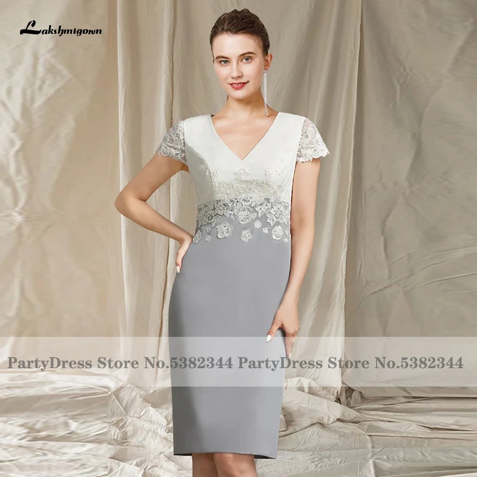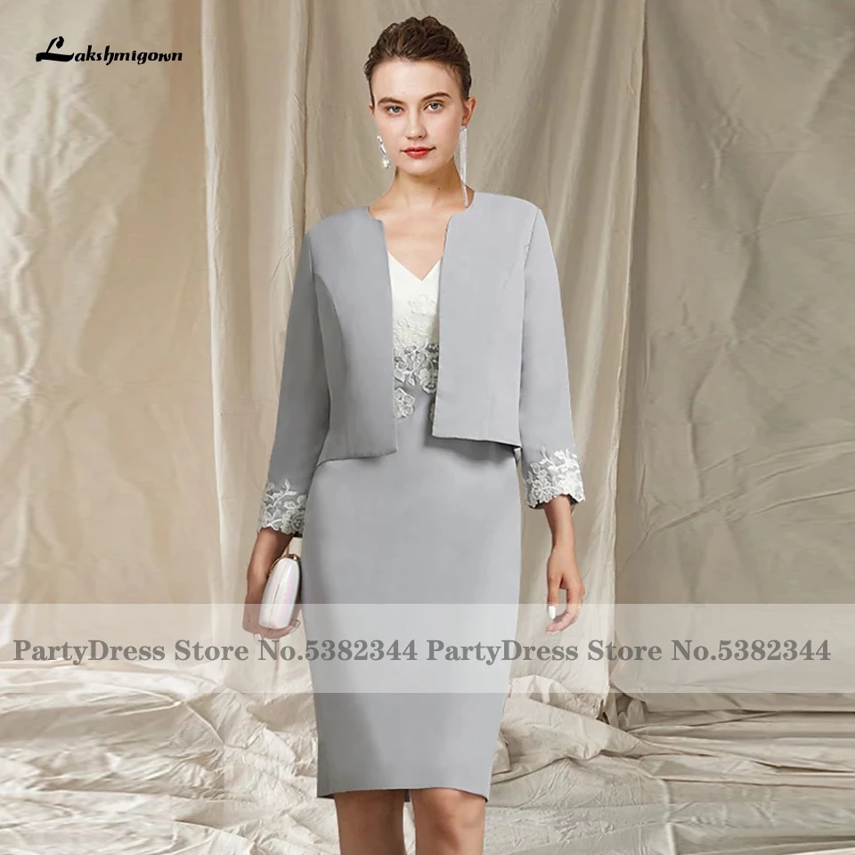 Lakshmigown скромные свадебные костюмы для матери до колена 2022 Серебряный Атласный халат Женское свадебное платье с курткой