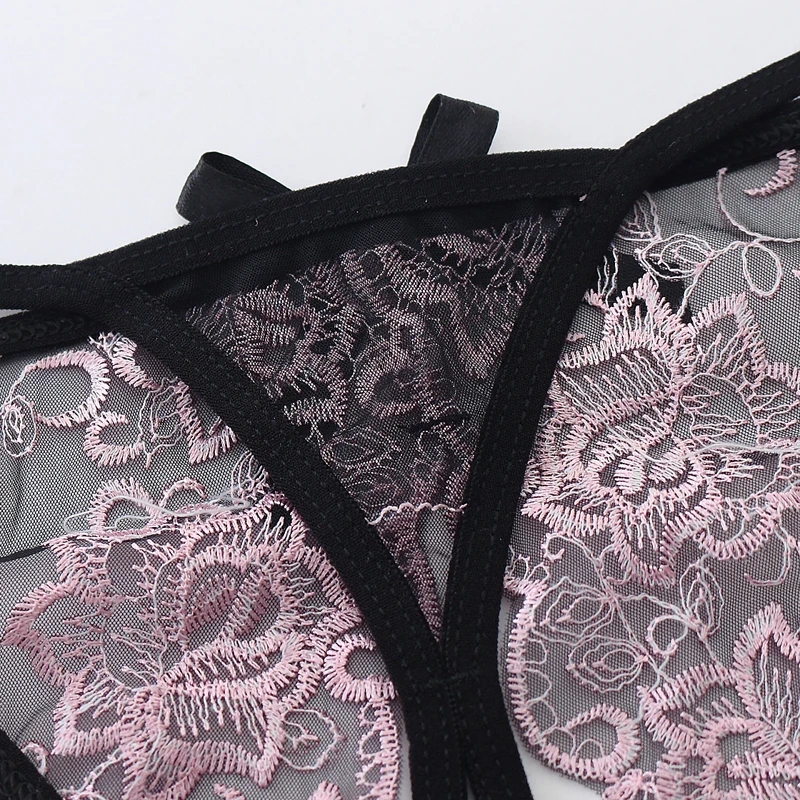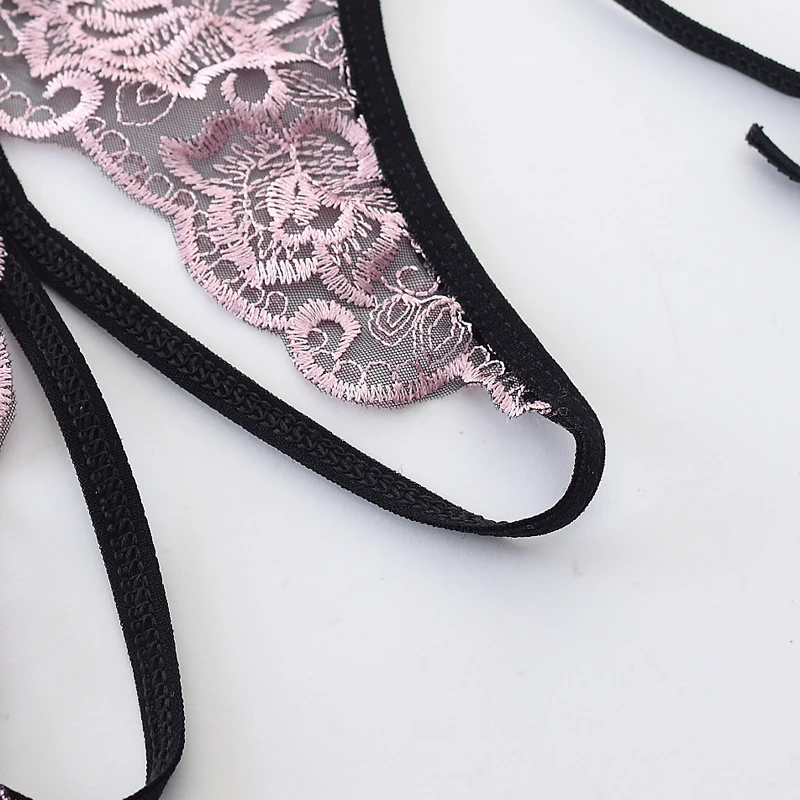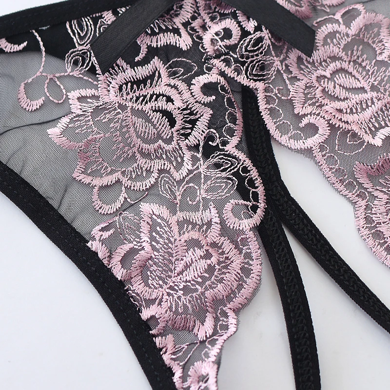 Трусы-стринги женские кружевные с низкой талией и вышивкой