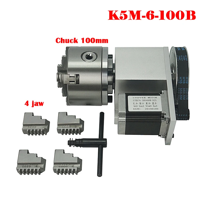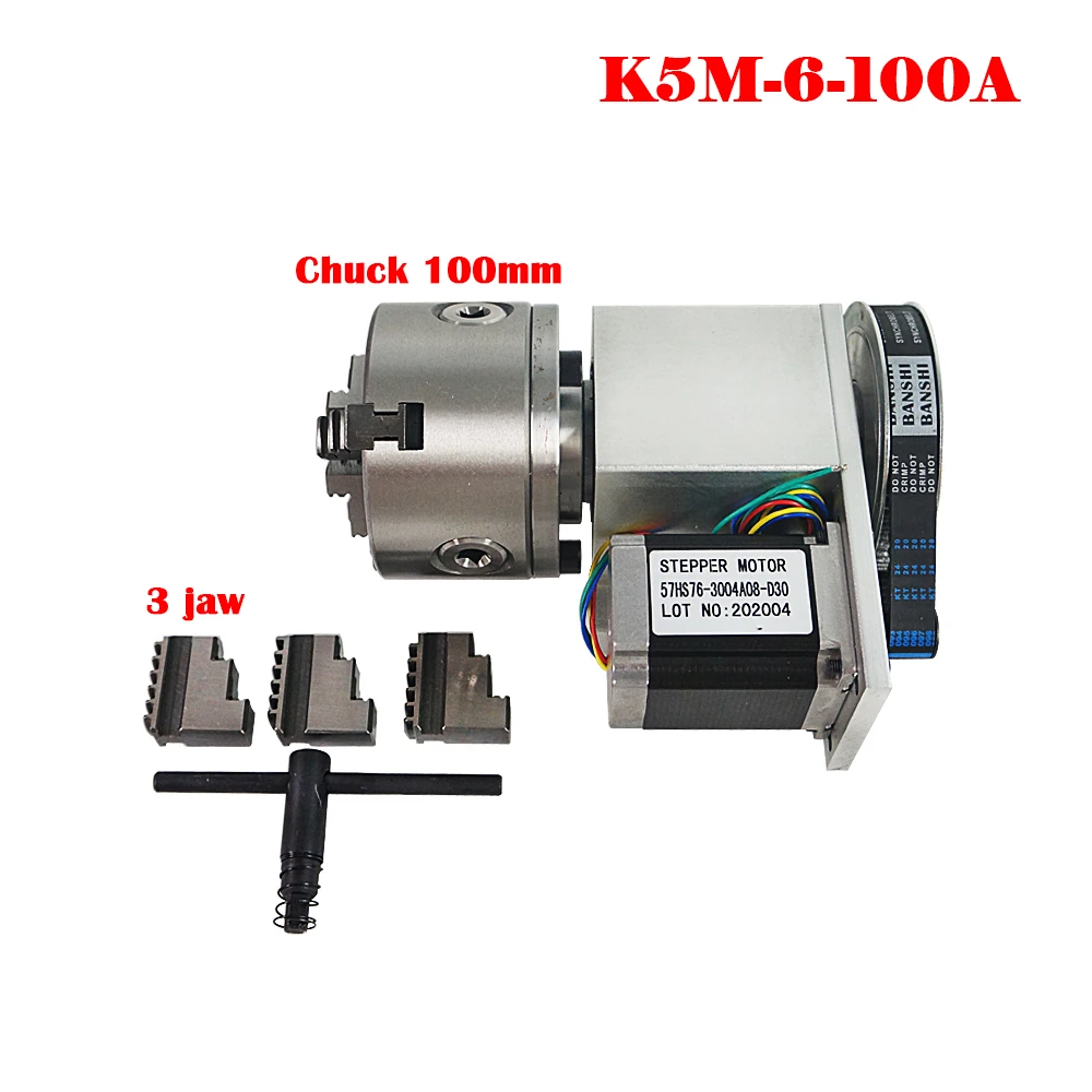 Роторный станок с ЧПУ, роторная ось 3, 4 челюсти, патрон 100 мм, поворотный вал 6:1, 4-й A aixs, Центральная высота 65 мм, для гравировального станка с ЧПУ