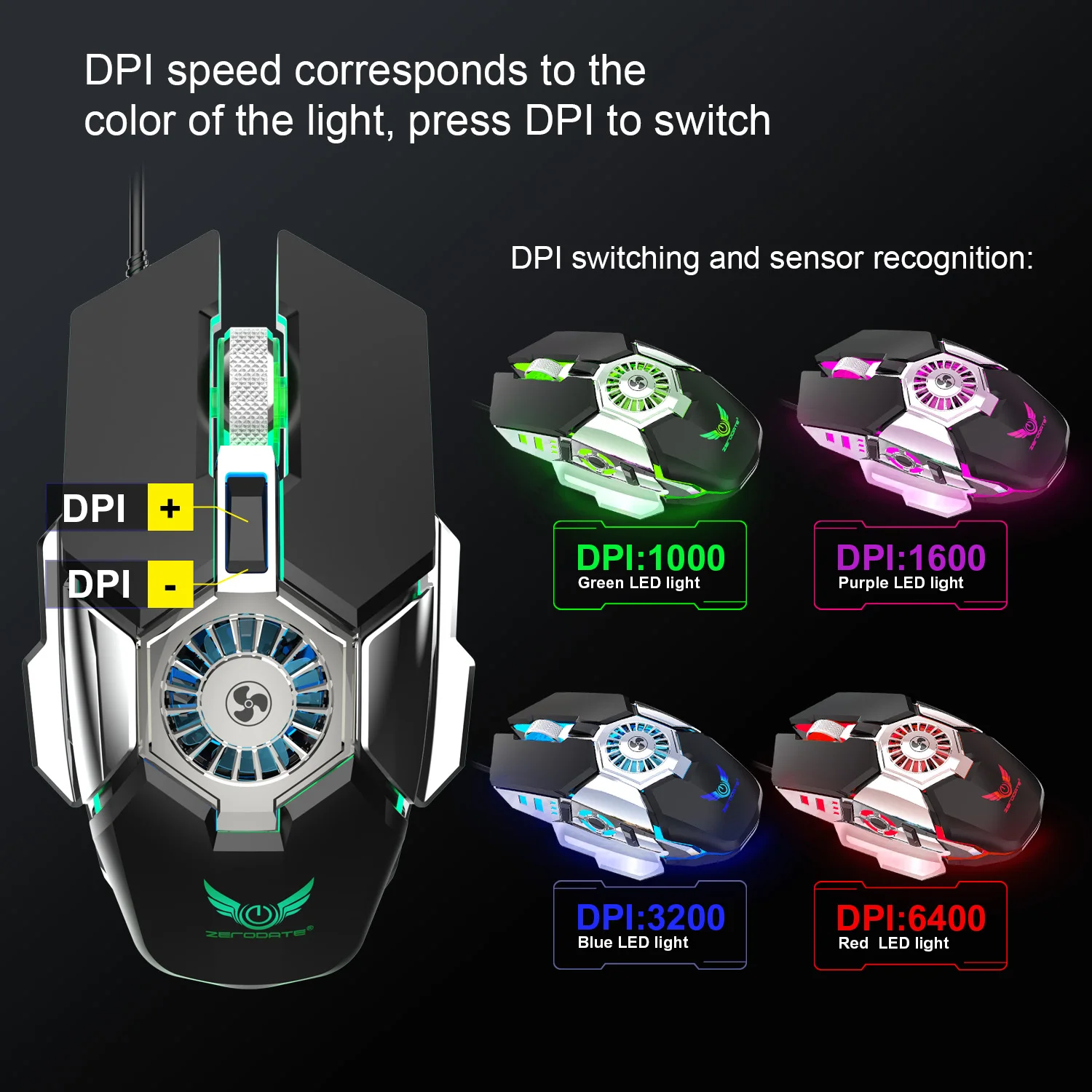 Проводная игровая мышь USB с охлаждающим вентилятором, механическая...