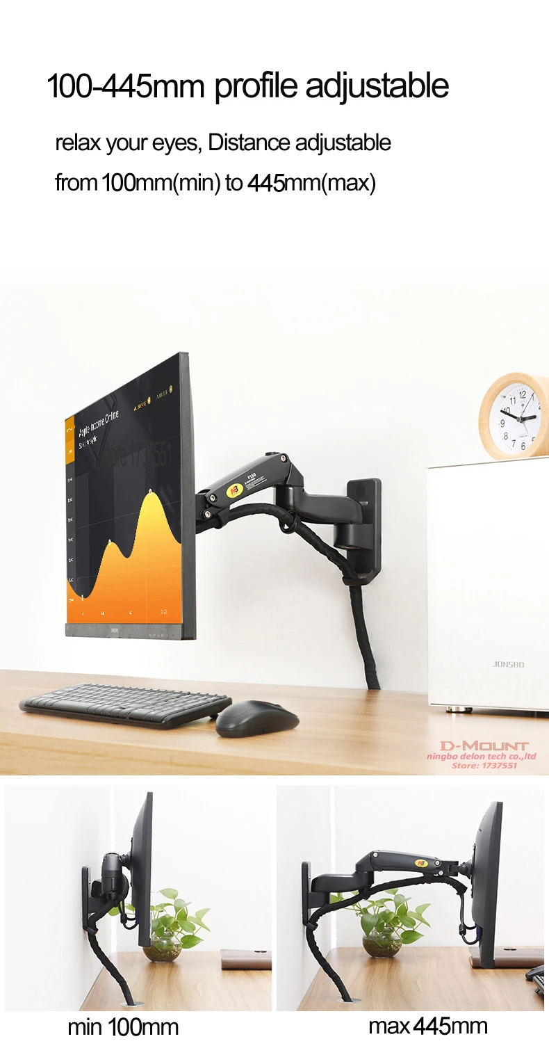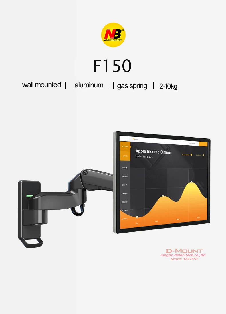Настенный кронштейн NB F150 для монитора 17-35 дюймов, алюминиевый держатель для телевизора с воздушной пружиной, крепление на стену, 2-10 кг, 100x100