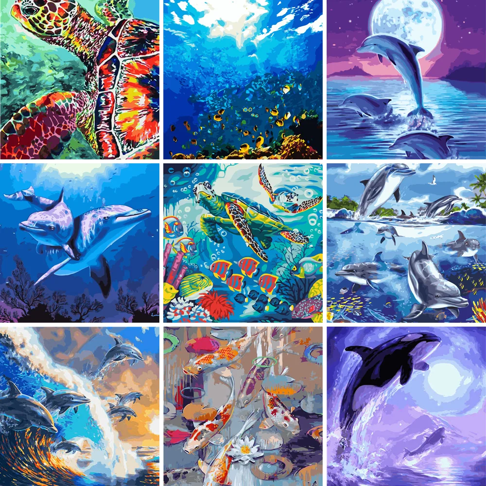 картина по номерам животное Дельфин рисуй сам хобби краска раскраска Лиса живопись по номерам рыба морское дно Набор для рисования по номерам, 4 звезды, 28 цветов