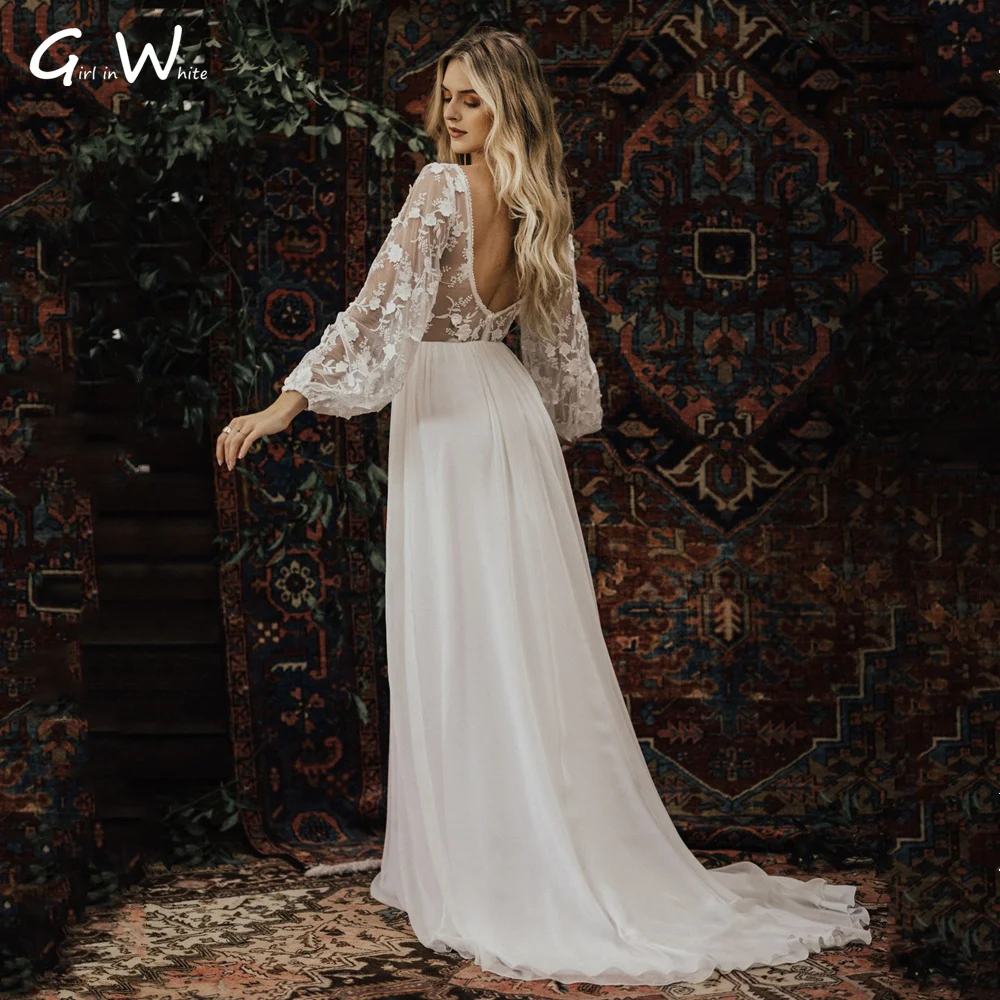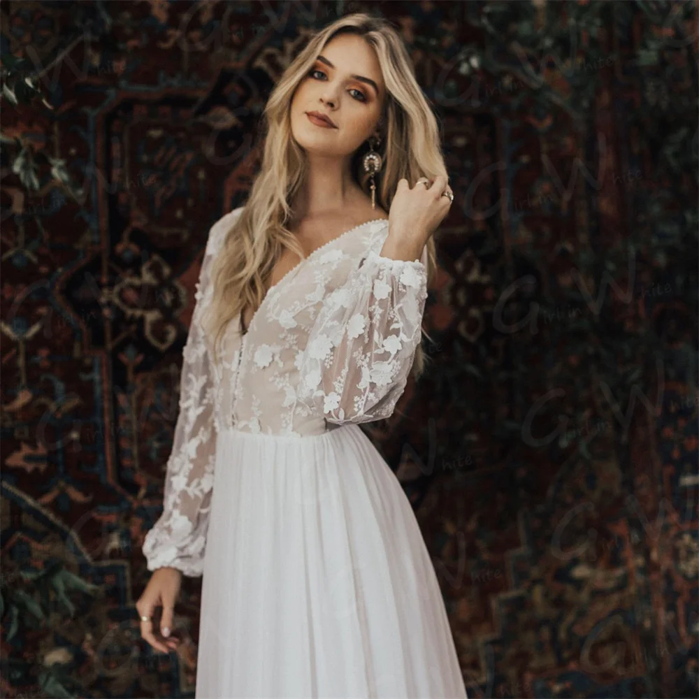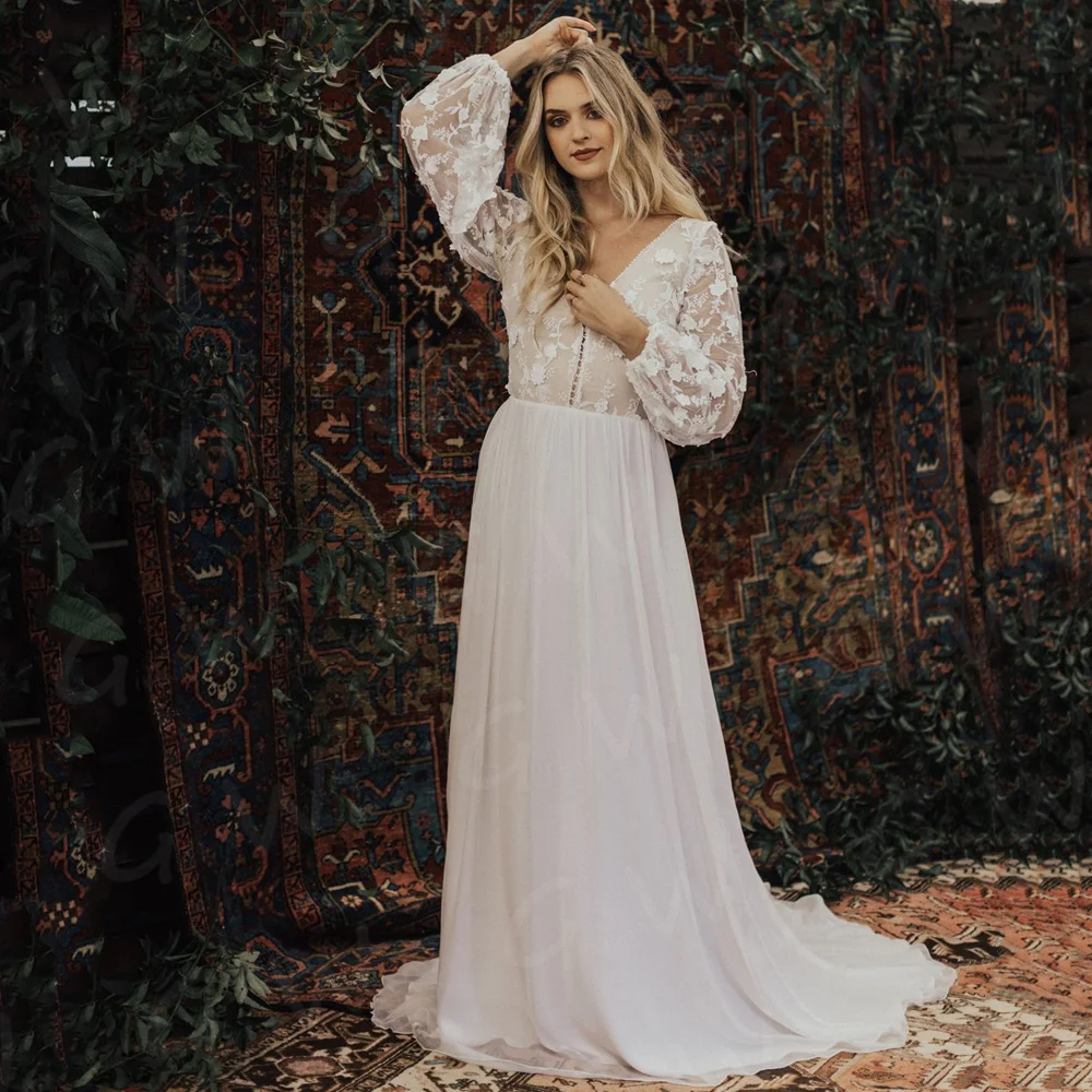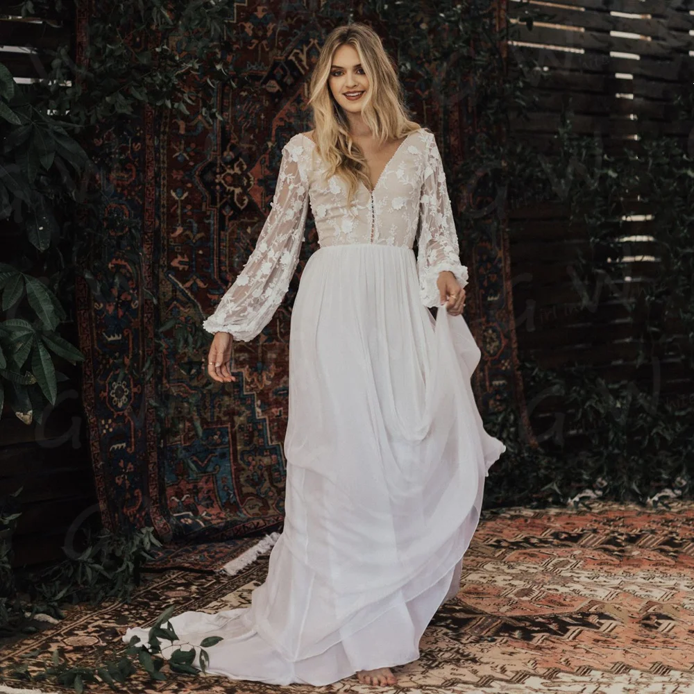 Женское свадебное платье It's yiiya, белое кружевное платье А-силуэта с глубоким V-образным вырезом и рукавами-фонариками на лето 2022