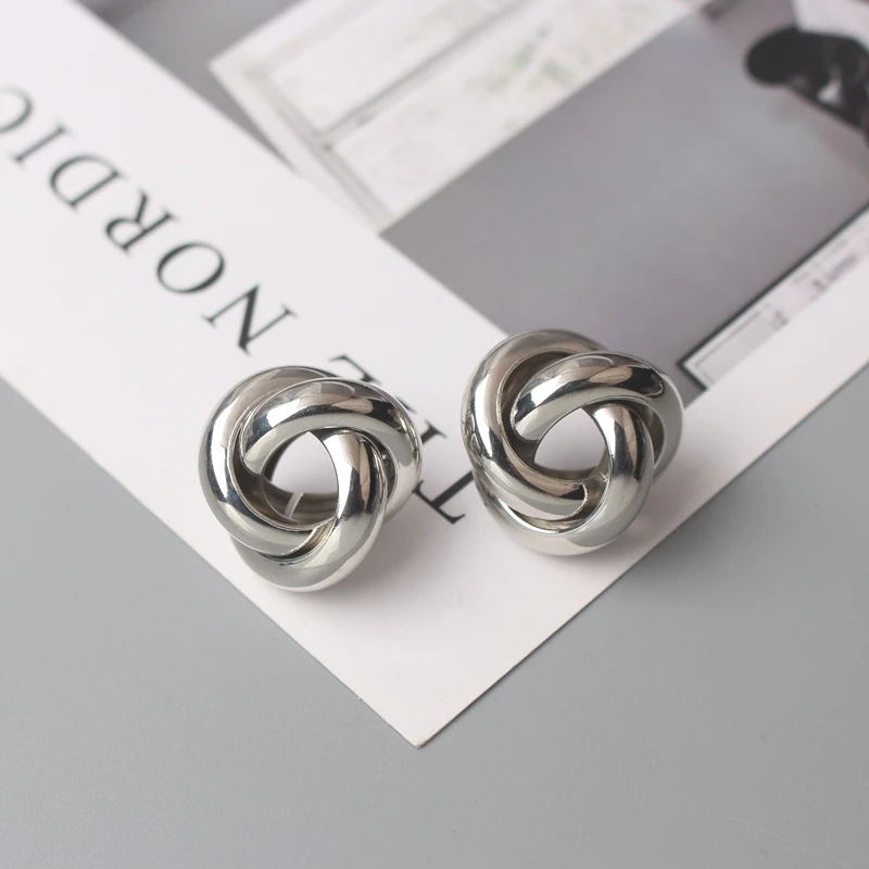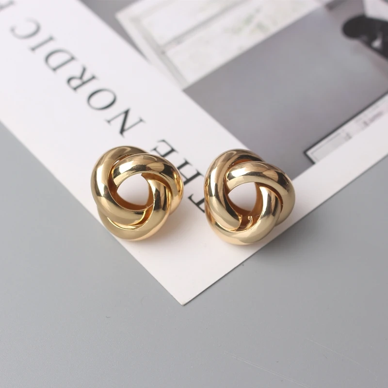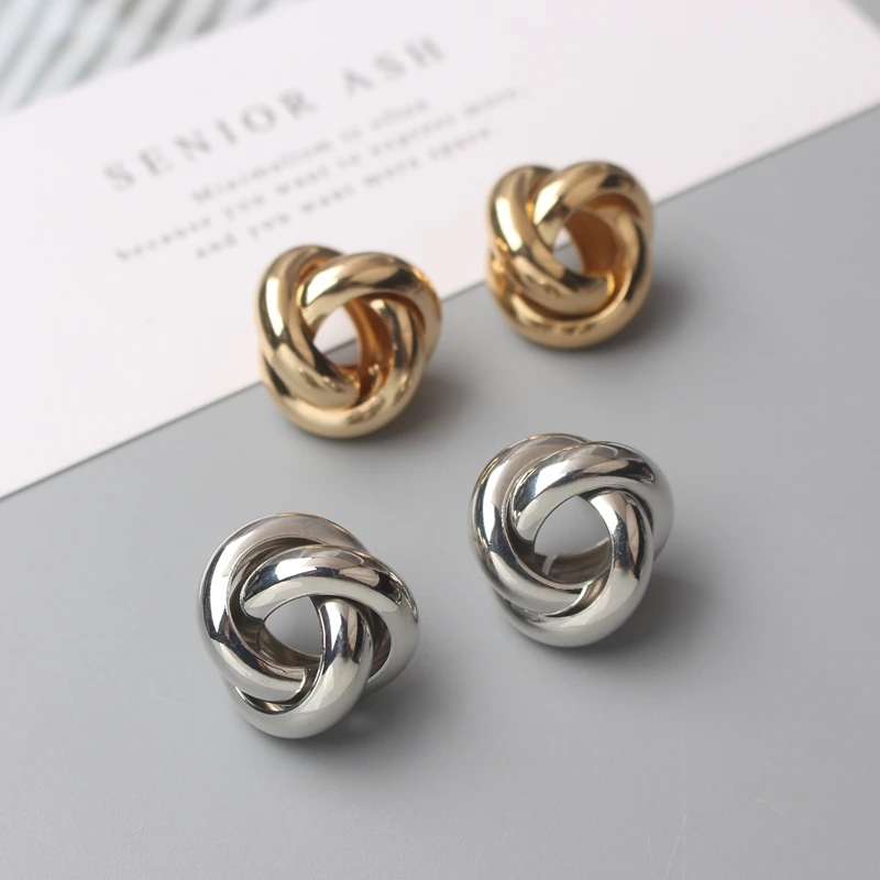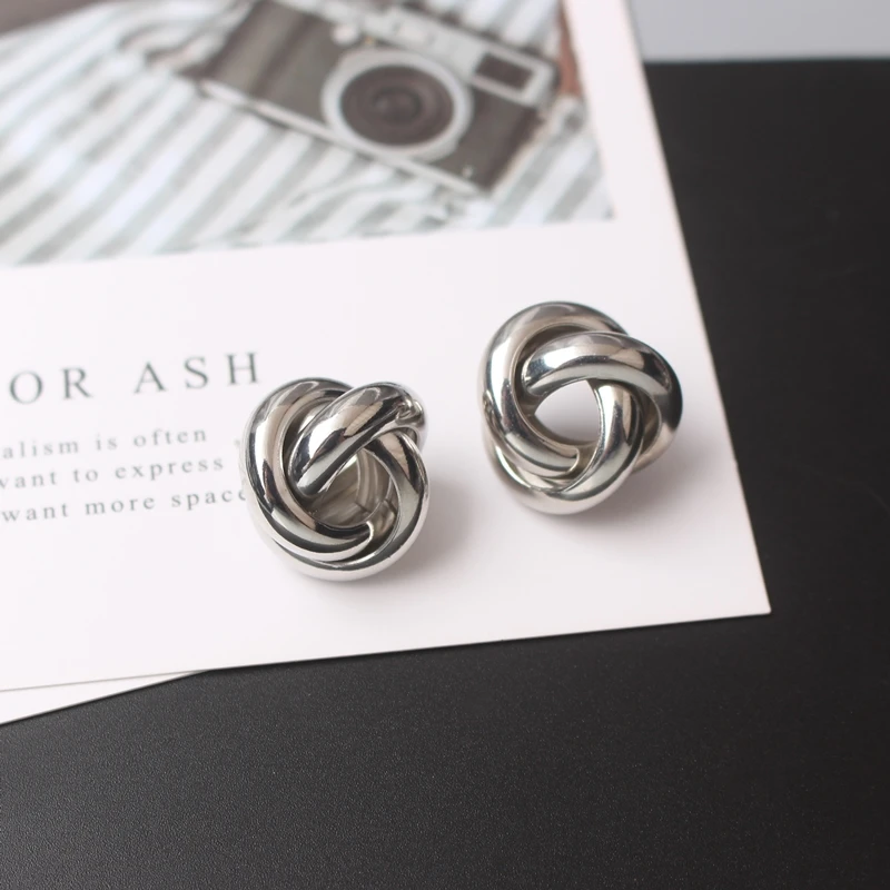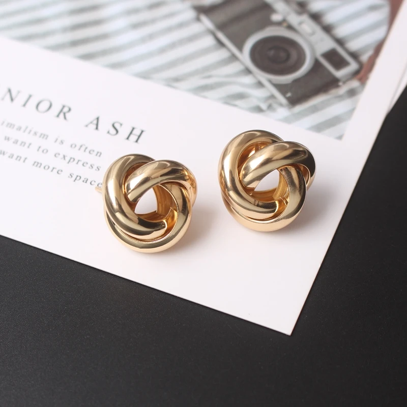 Маленькие витые серьги-гвоздики для женщин, золотой, серебряный цвет, камень, простой глянцевый геометрический металлический узел, вечерние серьги Girl, подарок