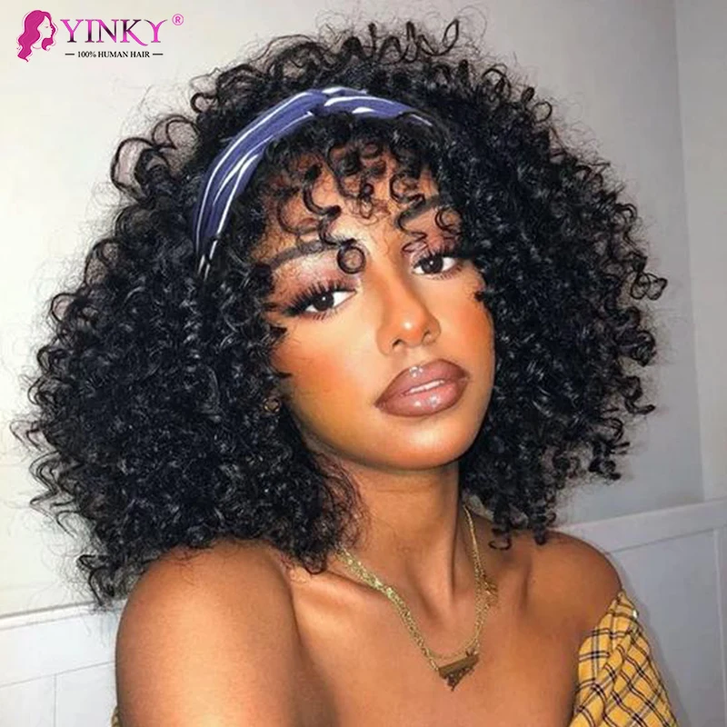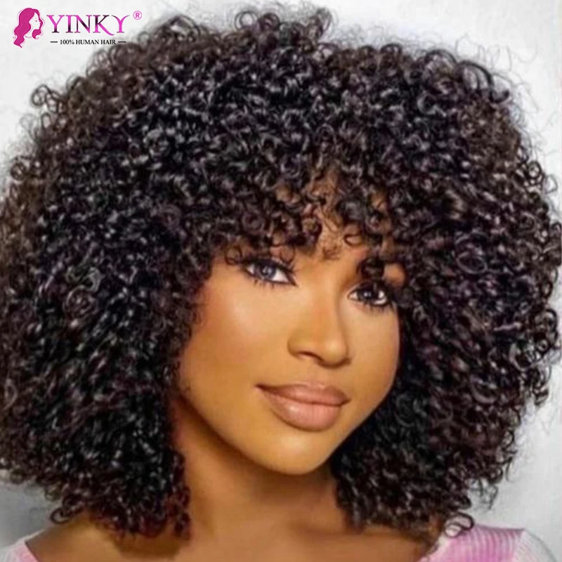 Бразильские кудрявые парики из человеческих волос с челкой, короткие бразильские волосы без клея Remy, парики для черных женщин