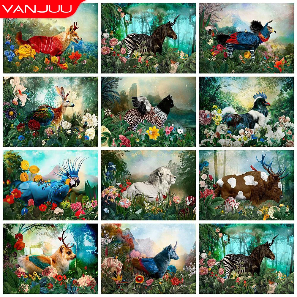 VANJUU 5D алмазная живопись, цветы, круглые бриллиантовые фотонабор...