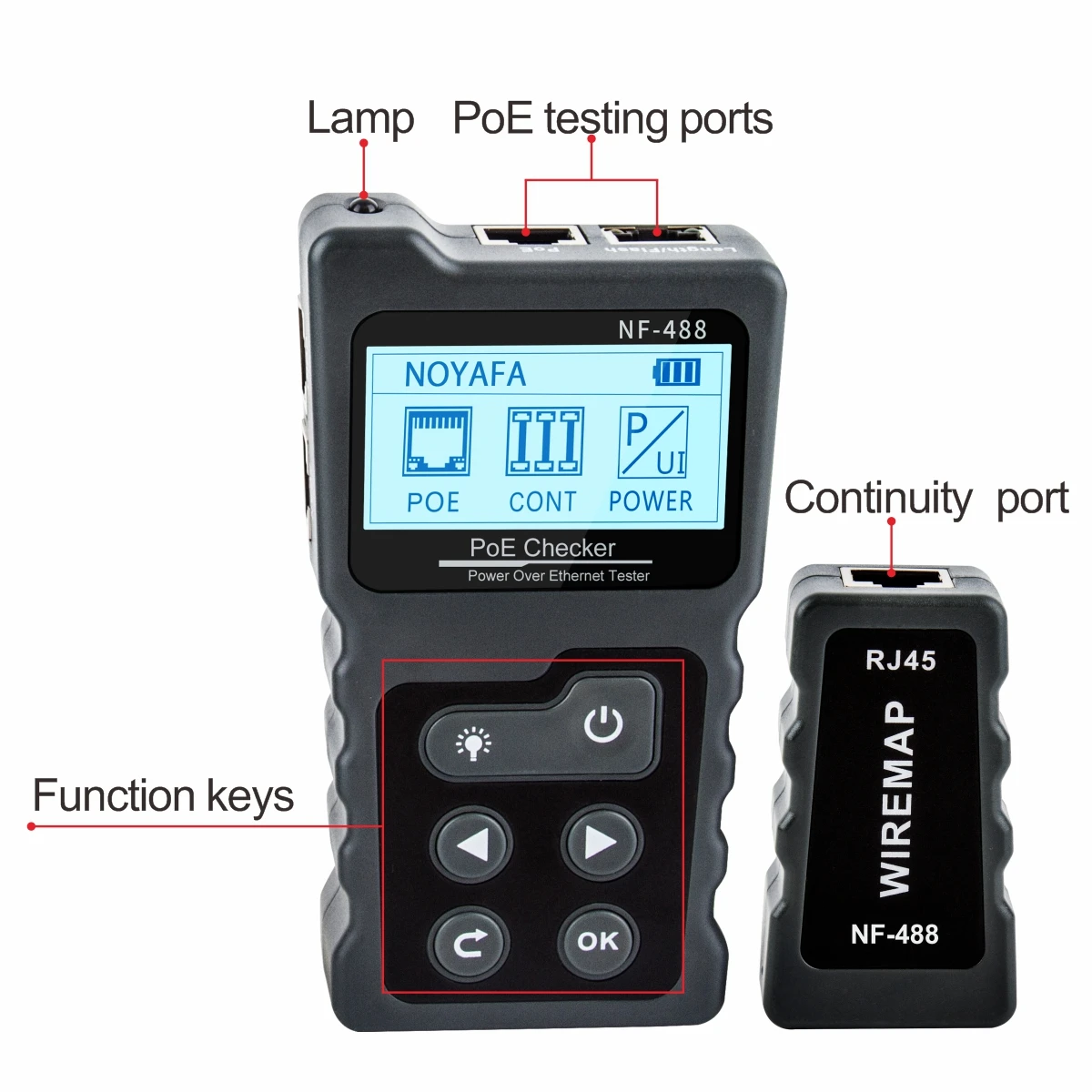 NOYAFA NF-488 Lan тестер, тестер сетевого кабеля с ЖК-дисплеем, тестер кабеля RJ45, тестер сети для ПК, тестер источника питания