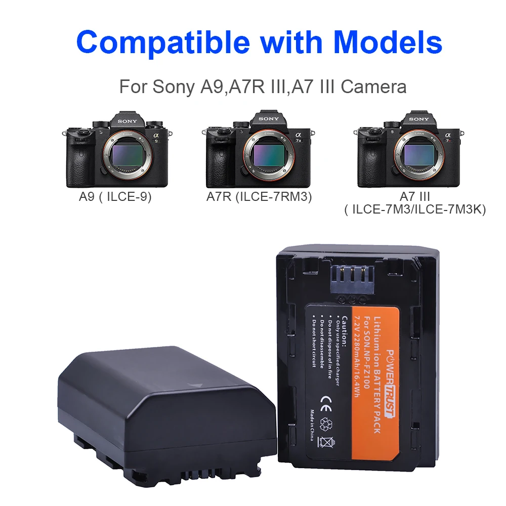 Аккумулятор POWERTRUST NP-FZ100 Z-series для цифровых фотоаппаратов SONY NP FZ100, SONY Alpha A7 III, A7R III, A9 черный