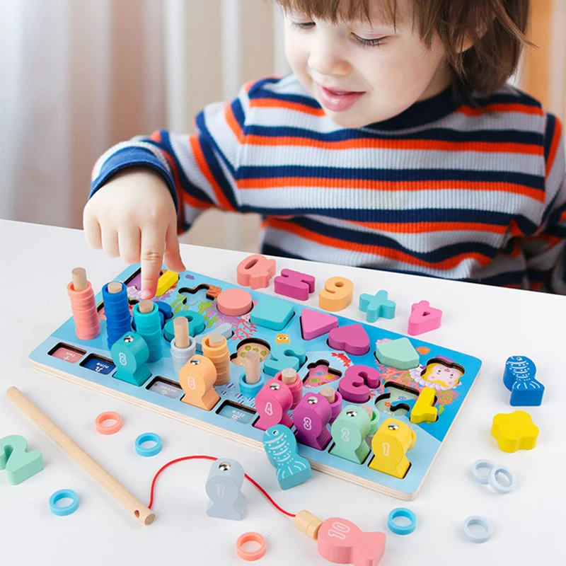 Дошкольная математическая игрушка Монтессори, фигурки геометрических форм, магнитные рыболовные строительные блоки, пазл, занятая доска, обучающие игрушки