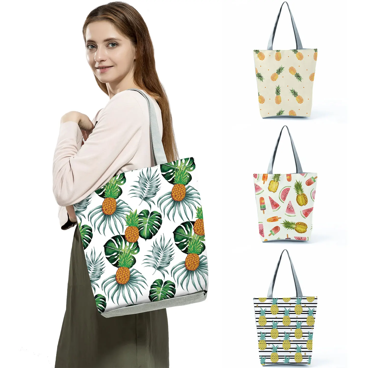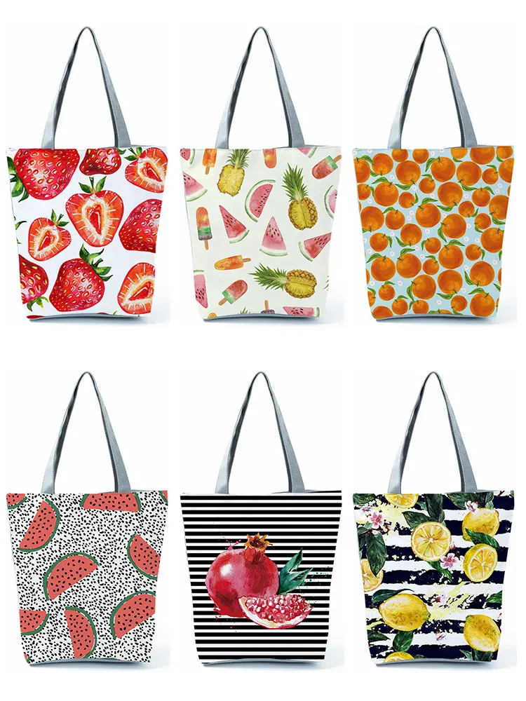Сумки с принтом лимона, эко многоразовые, высокая вместительность, для женщин, сумка для покупок с принтом фруктов, Повседневная Сумка-тоут на плечо с индивидуальным узором