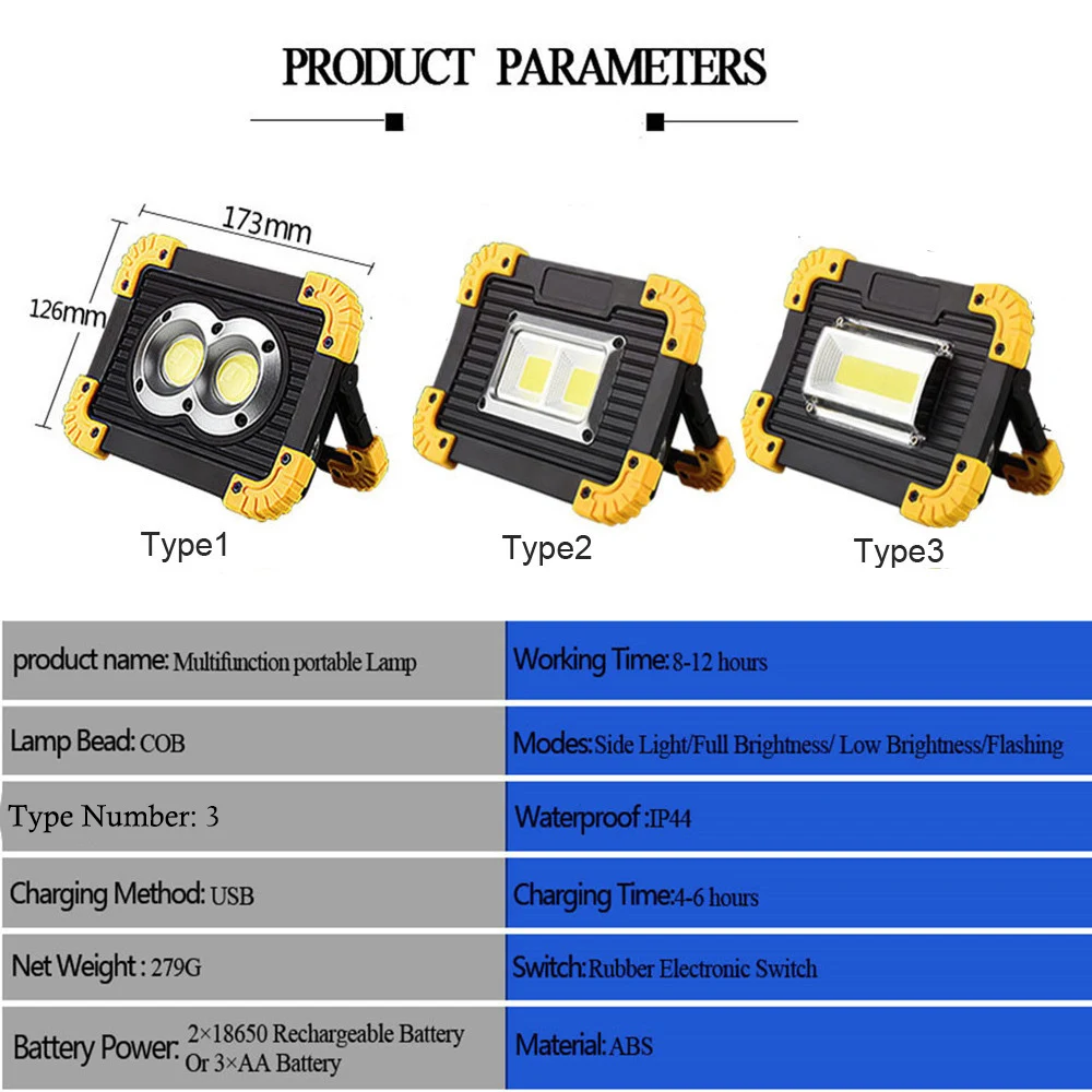 Светодиодный прожсветильник, водонепроницаемый перезаряжаемый прожексветильник, уличная портативная работа на батарейках, посветильник лампа, светильник для рыбалки и кемпинга