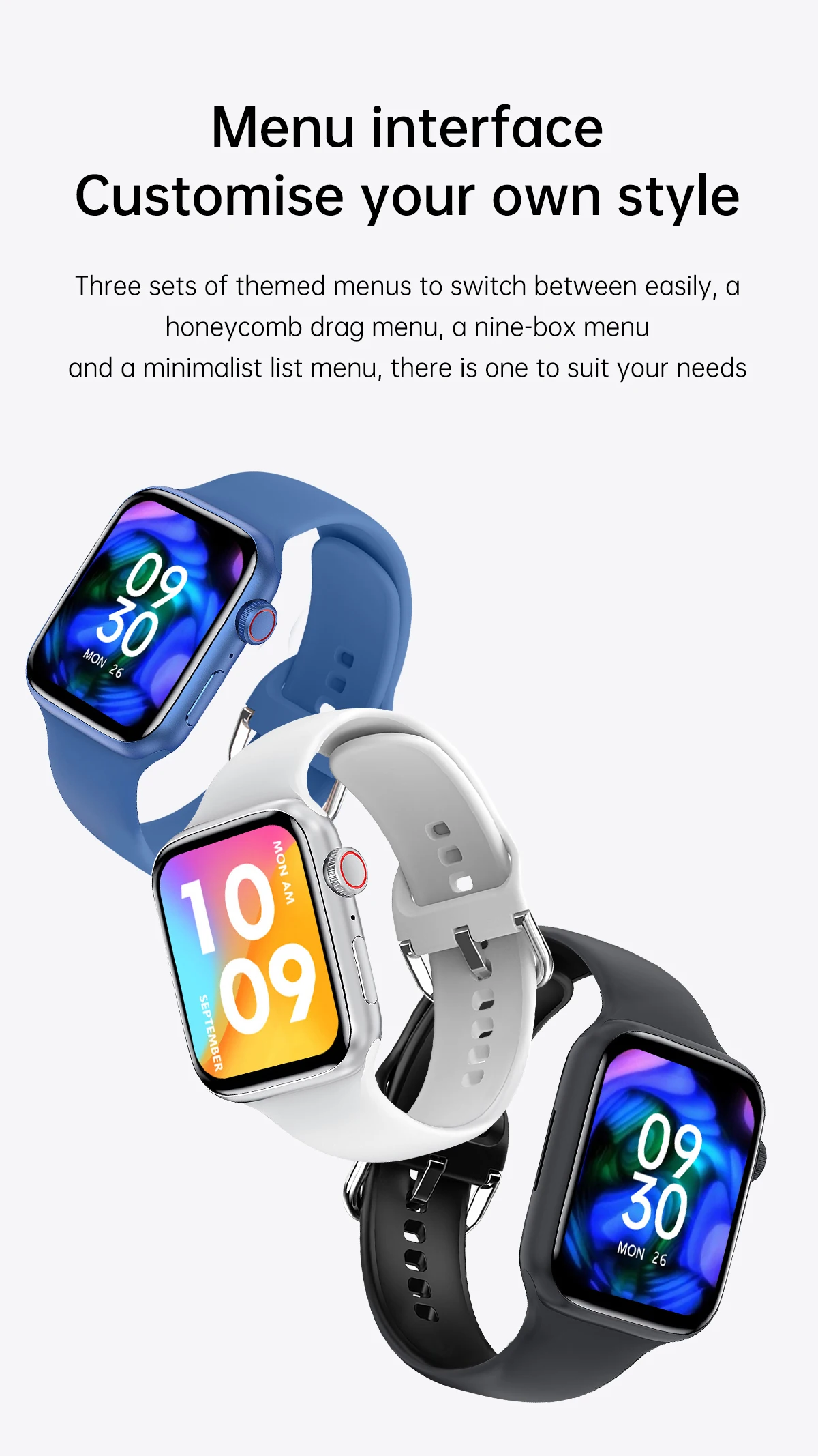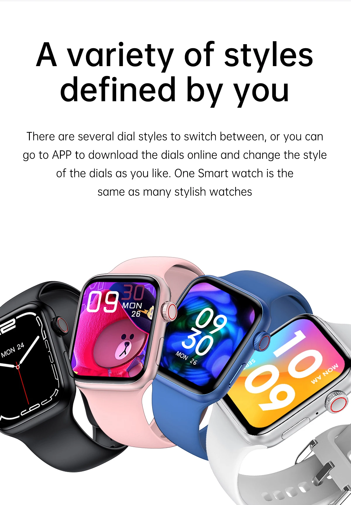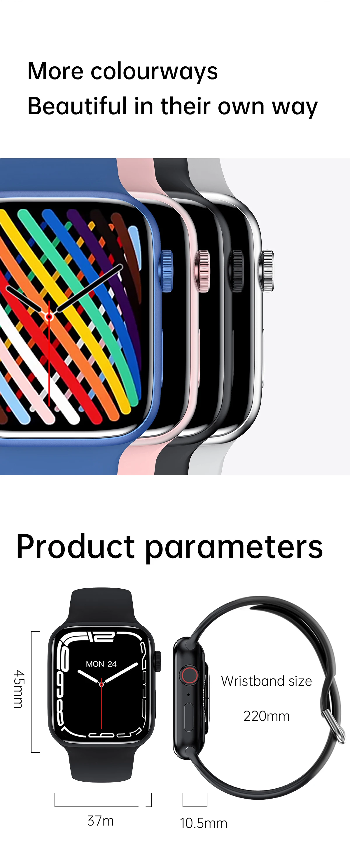 Умные квадратные циферблаты с раздельным экраном для получения дополнительной информации с главного экрана вы можете проведите пальцем влево и сдвинуть вниз для выполнения различных часто используемых функций циферблат прост в использовании
