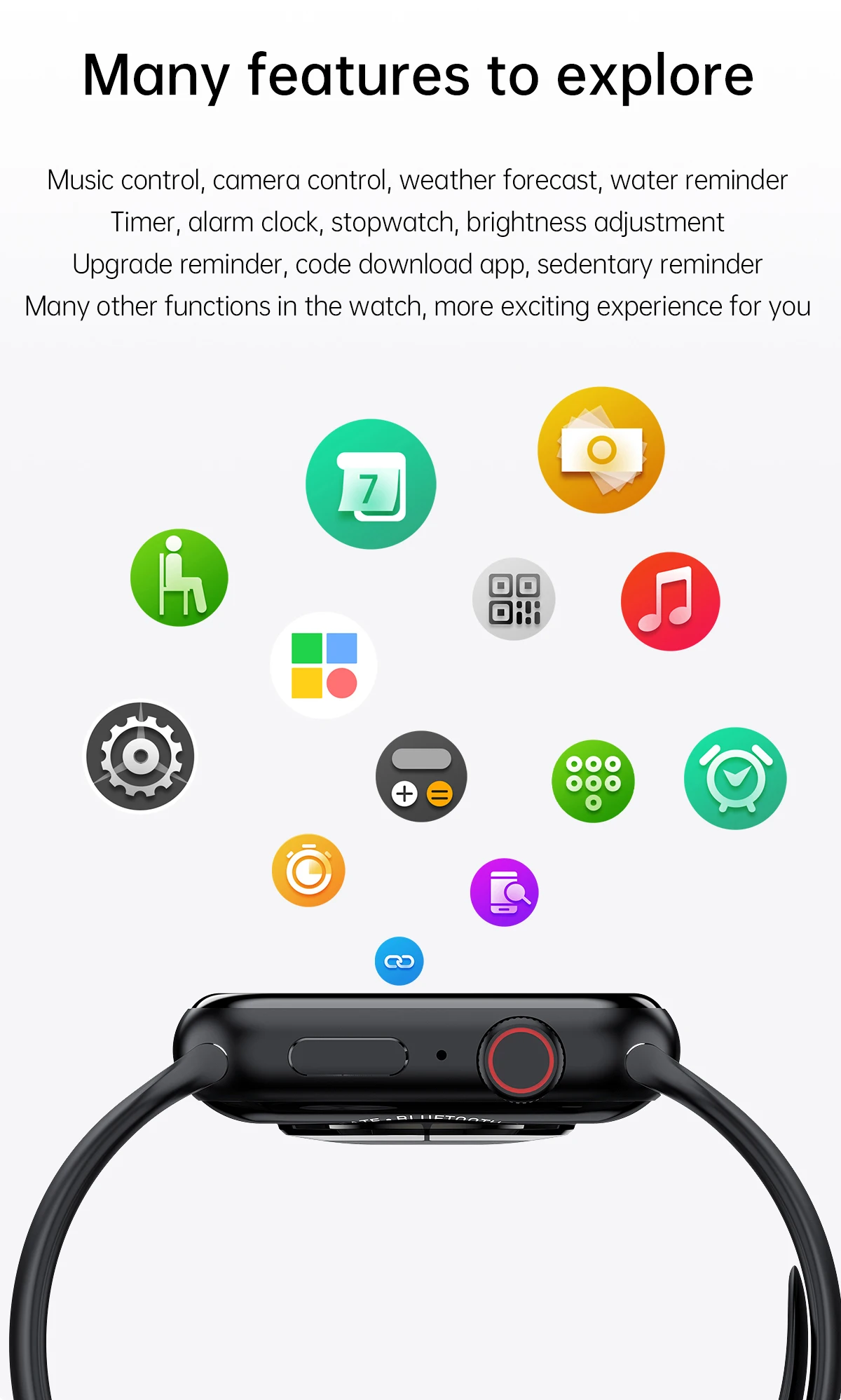 Управление музыкой, управление камерой, прогноз погоды, таймер напоминания о воде, будильник, секундомер, напоминание о регулировке яркости, приложение для загрузки кода, напоминание о малоподвижности, многие другие функции в часах, более захватывающий опыт для вас