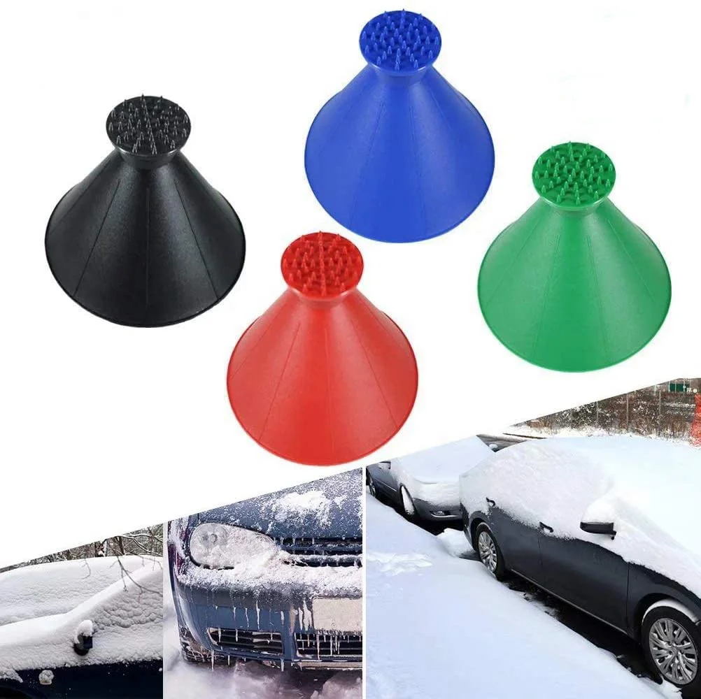 Продукт-это оригинальный скребок для льда и средство для удаления снега в форме конуса, поэтому вы можете просто перемещать его в любом направлении или в кругах, чтобы одновременно удалить больше снега с вашего автомобиля.
