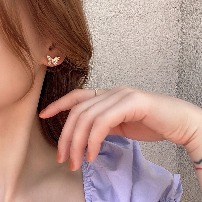 Корейские элегантные милые серьги-гвоздики Стразы с бабочкой для же...
