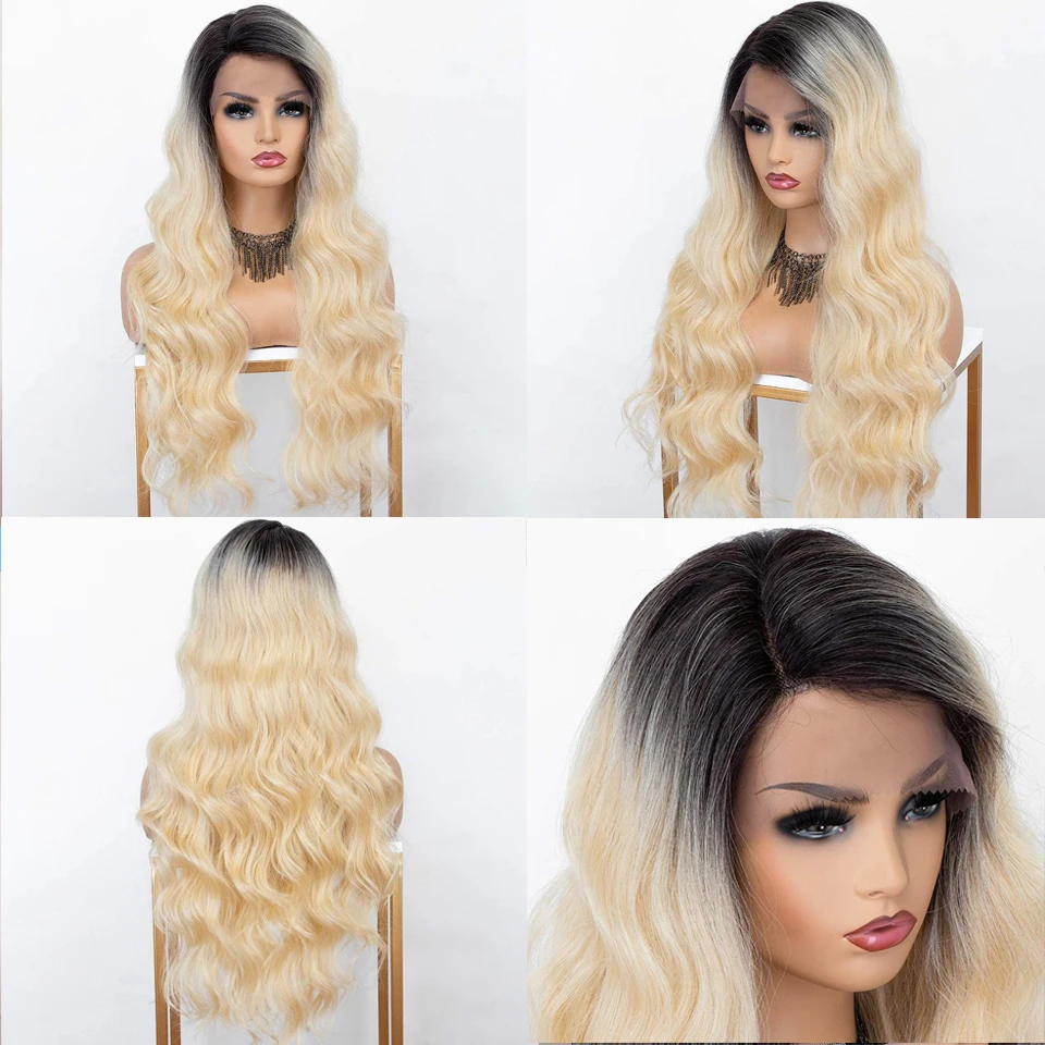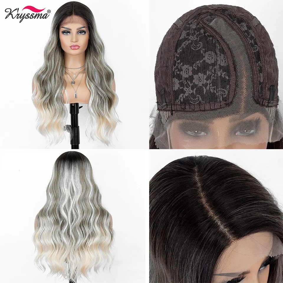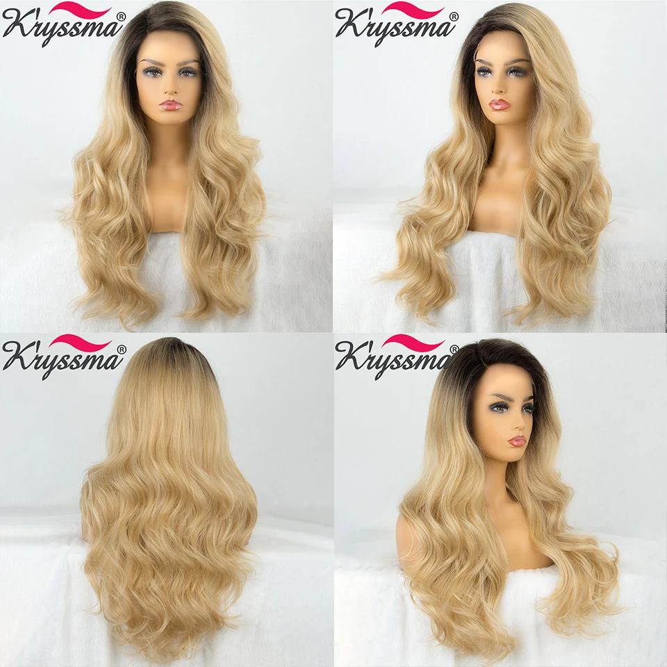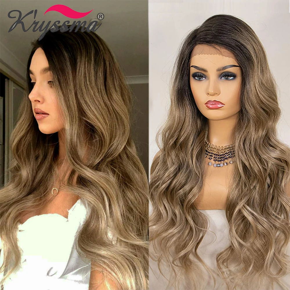 Kryssma Ombre блонд парики синтетический кружевной передний парик пепельный блонд длинные волнистые синтетические парики для женщин Косплей парики с черными корнями