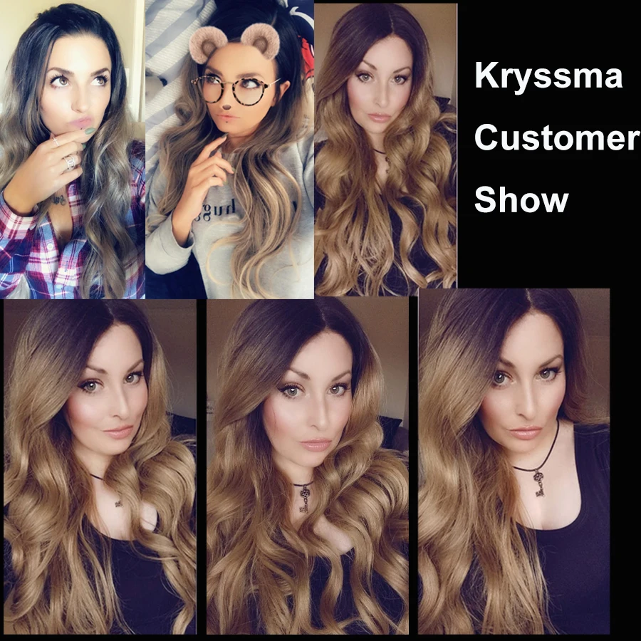 Посылка включает в себя:1x K'ryssma синтетический Омбре блонд кружевной передний парик + 2 шт. x растягивающийся эластичный нейлон Лучшие парики шапки от K'ryssma