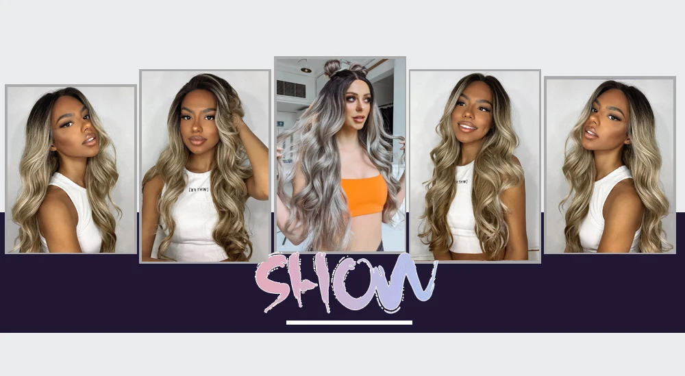 Синтетический волнистый парик Особенности:Эти волнистые кружевные передние парики можно подогреть в пределах 320F, при нагревании, пожалуйста, быстро протирайте волосы в чехол, чтобы повредить волосы