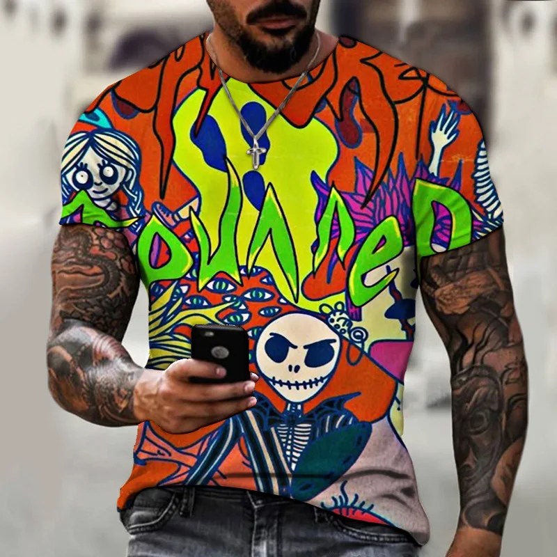 Футболка мужская оверсайз с 3D-принтом, свободная рубашка с круглым...
