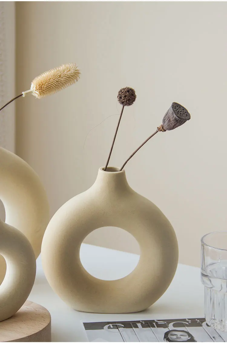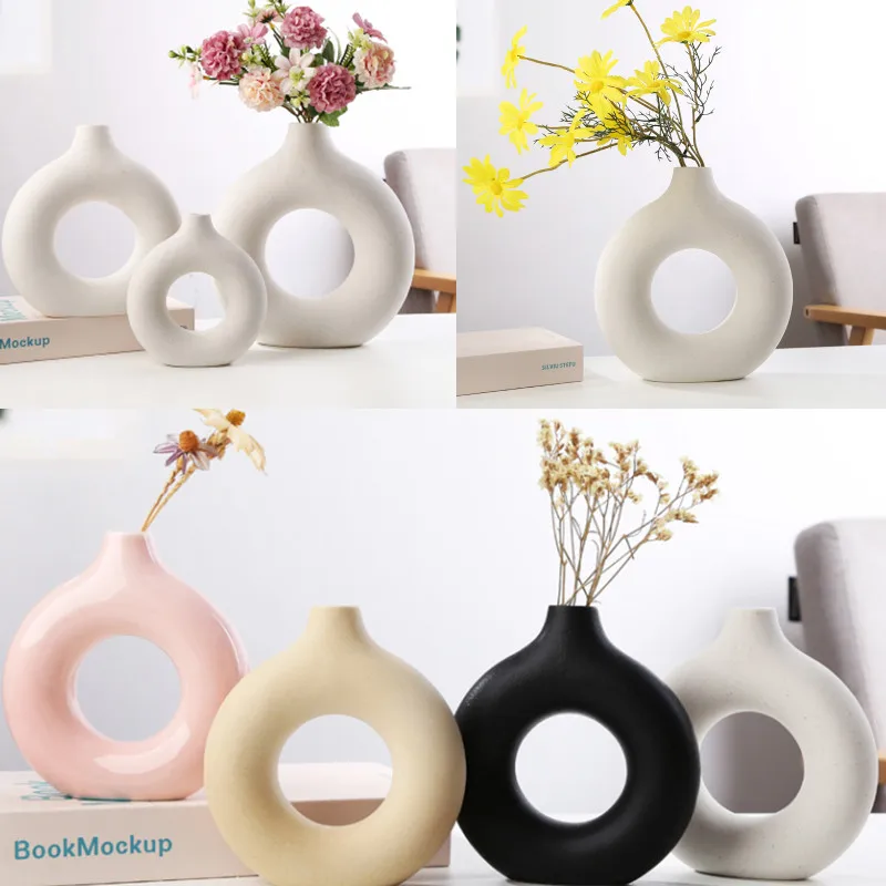 Круглая керамическая ваза в скандинавском стиле с отверстиями, пончики, цветочные аксессуары, аксессуары для офиса, рабочего стола, гостиной, интерьерный декор, подарок
