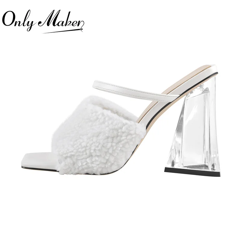 Босоножки Onlymaker на квадратном каблуке, выразительные сандалии с открытым носком, прозрачные украшения из флока, без застежки, изящные милые, лето