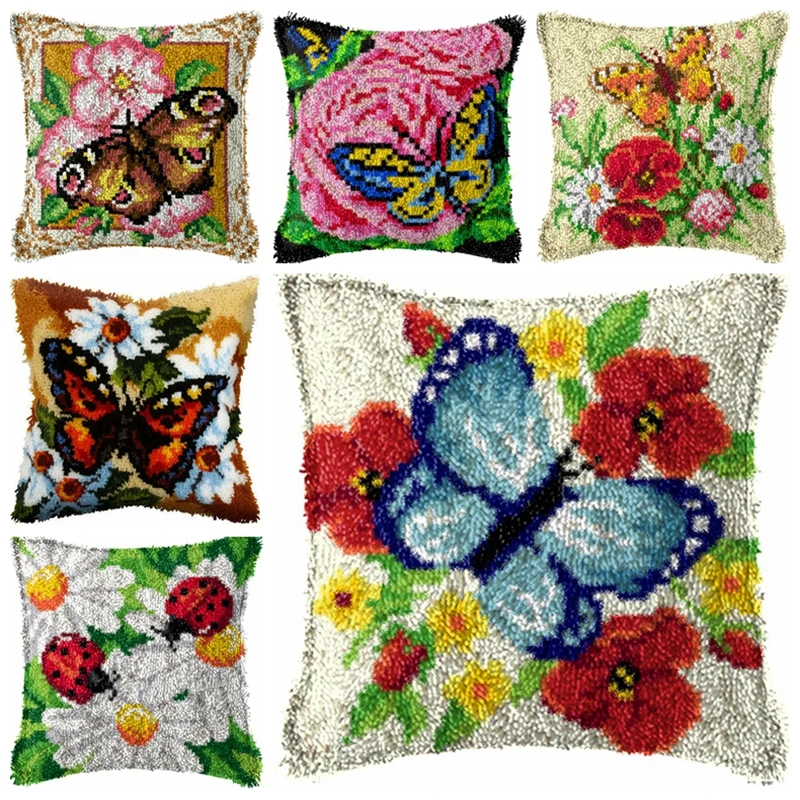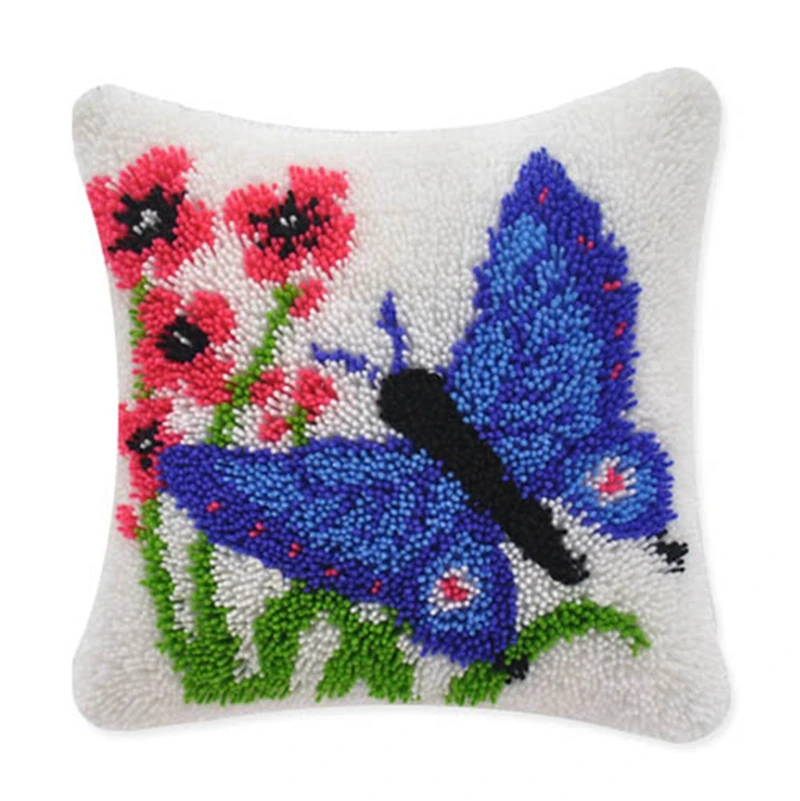 Серия бабочек, серия, сегментная подушка для вышивки, цветок, трава, грубая шерсть, вышивка крестиком, защелка, крючок для вышивки ковра, искусственный крючок, набор