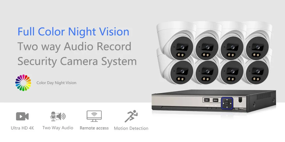 1. Все наши NVR и камеры являются реальными H.265 4K 8MP, NVR может поддерживать 8MP и 4K max, вы можете подключить 720p,1080p,3mp,4mp ,5mp, камеры 8mp & 4k с нашим POE NVR;2. Наш NVR поддерживает распознавание лиц, умное воспроизведение лица, обеспечивает ультра высокое разрешение видео наблюдения, обеспечивая максимальную детализацию и четкость в наличии;3. Наш NVR и камеры поддерживают расширенное H.265 Сжатие видео, питание через Ethernet, подключи и работай, простота установки;4. Все камеры встроены в микрофон и динамик, поддержка двухсторонней аудиозаписи;5. Все камеры поддерживают Ultra HD Full Color Day Night Vision;6. Поддержка обнаружения движения, оповещения по электронной почте, воспроизведение видео, многоязычный;7. Поддержка Android,Iphone,Ipad,PC,VMS,P2P view;8. Удаленный доступ в любом месте, в любое время;