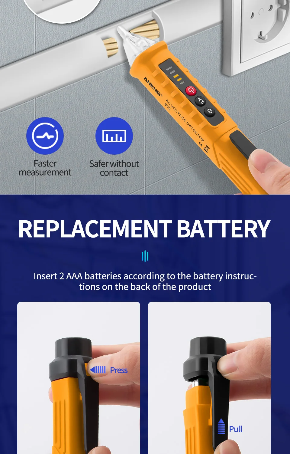 Бесконтактный детектор напряжения переменного тока ANENG VD802, тестер, измеритель напряжения 12-1000 В в стиле ручки, электрический индикатор, светодиодный измеритель напряжения, вейп-ручка