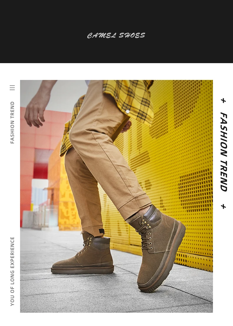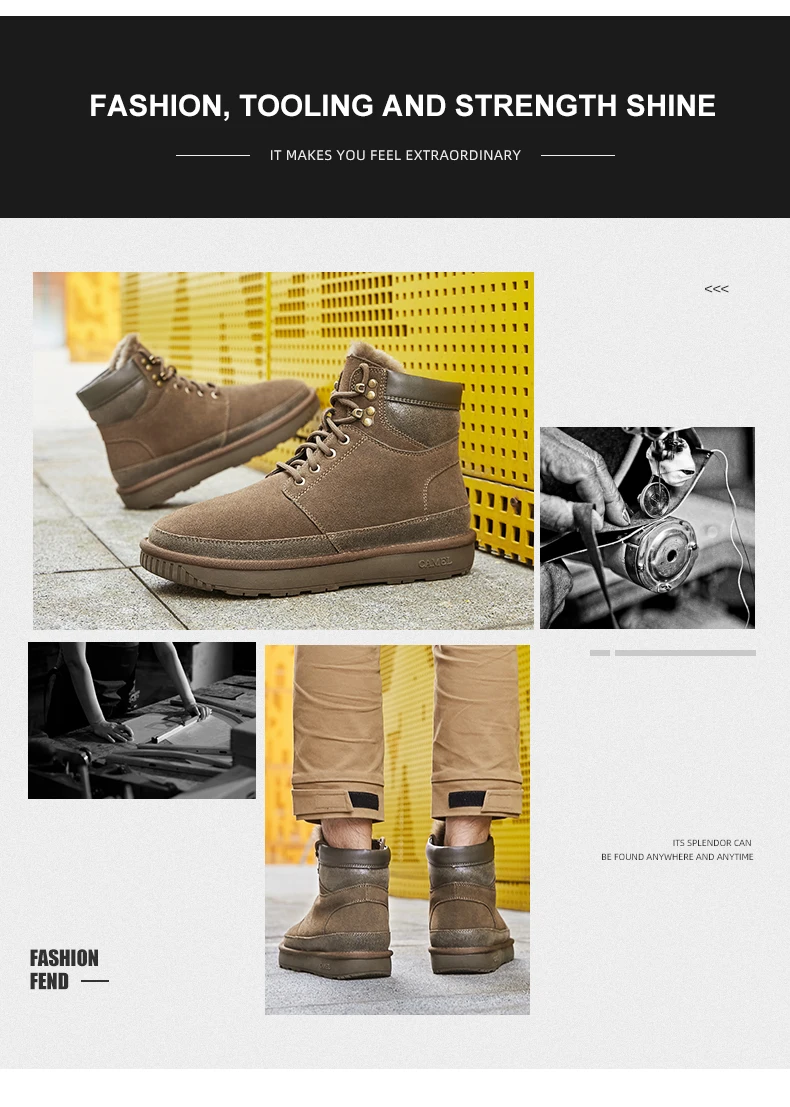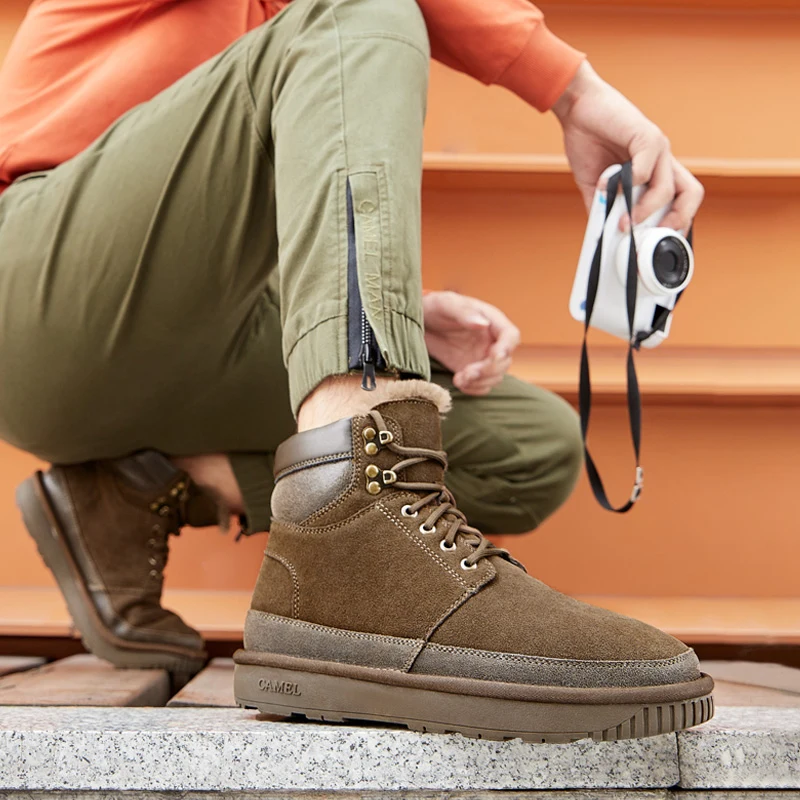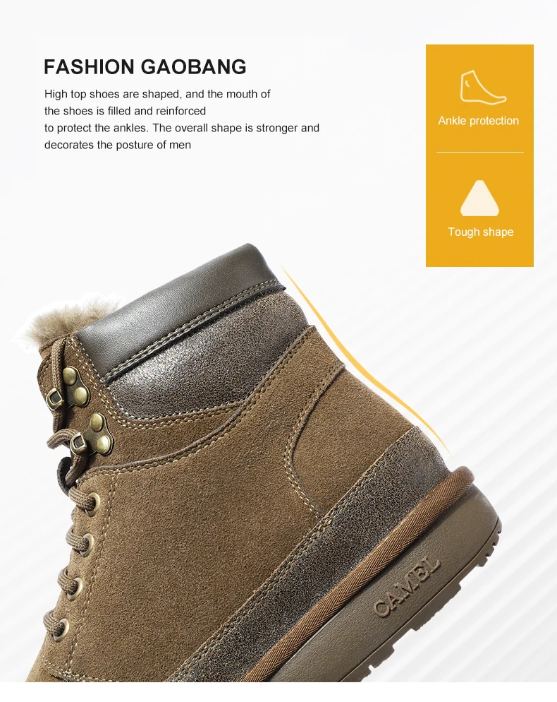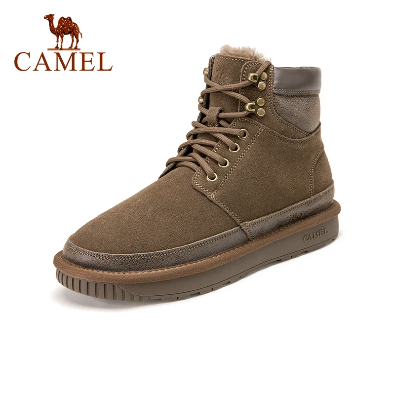 Мужские теплые бархатные ботинки Camel, повседневные Утепленные ботинки с высоким берцем и хлопковой подкладкой, на шнуровке, для зимы, 2021