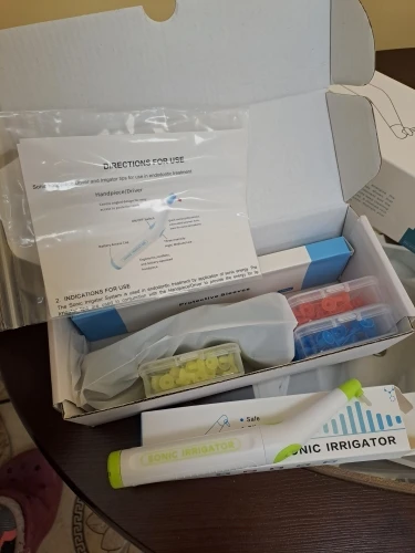 Работает от 1 батарейки. Функцию свою выполняет, в комплекте набор из 3х разных насадок. Насадки можно автоклавировать, с ними ничего не происходит.