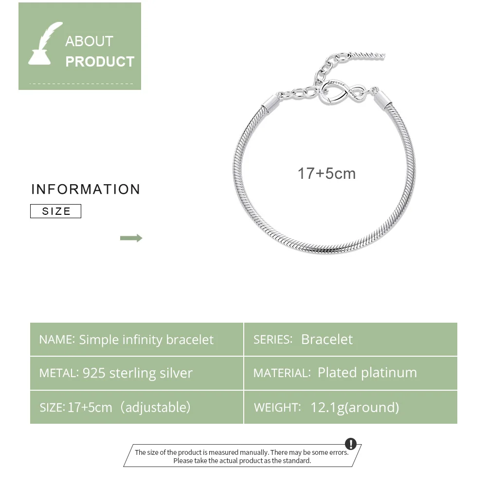 ❤[Описание] Платиновое Покрытие основной стиль змеиной кости браслет с символом бесконечности в конце является простым, но универсальным, стильным и уникальным.❤[Спецификация] Длина: 17 + 5 см (регулируется); Вес: 12,1 г; Диаметр браслета: 0,12 дюйма (около 3 мм).❤[Материал] Стерлинговое Серебро 925 пробы и платина с покрытием.❤[Для подарка] 1 шт. 925 серебряный браслет и 1 шт. Подарочный мешочек, который является идеальным подарком для девочек-подростков, ее, подруги, лучшего друга, сестры, дочери.