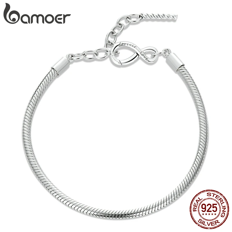 Серебряные браслеты BAMOER в виде змеи, браслеты из стерлингового с...