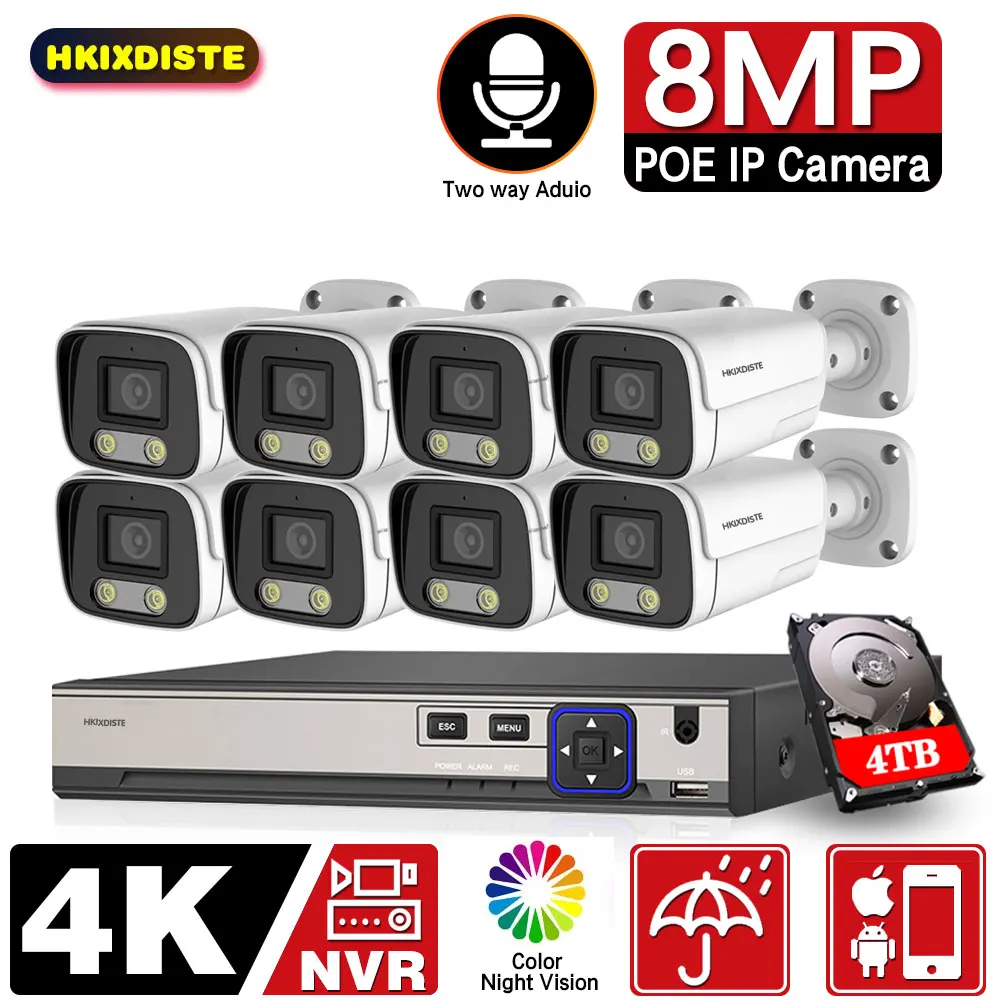 Двухсторонняя аудио видео наблюдение IP POE камера набор 4K 8ch NVR комплект HD цветное ночное видение 8 каналов камера видеонаблюдения системы безопасности камера система