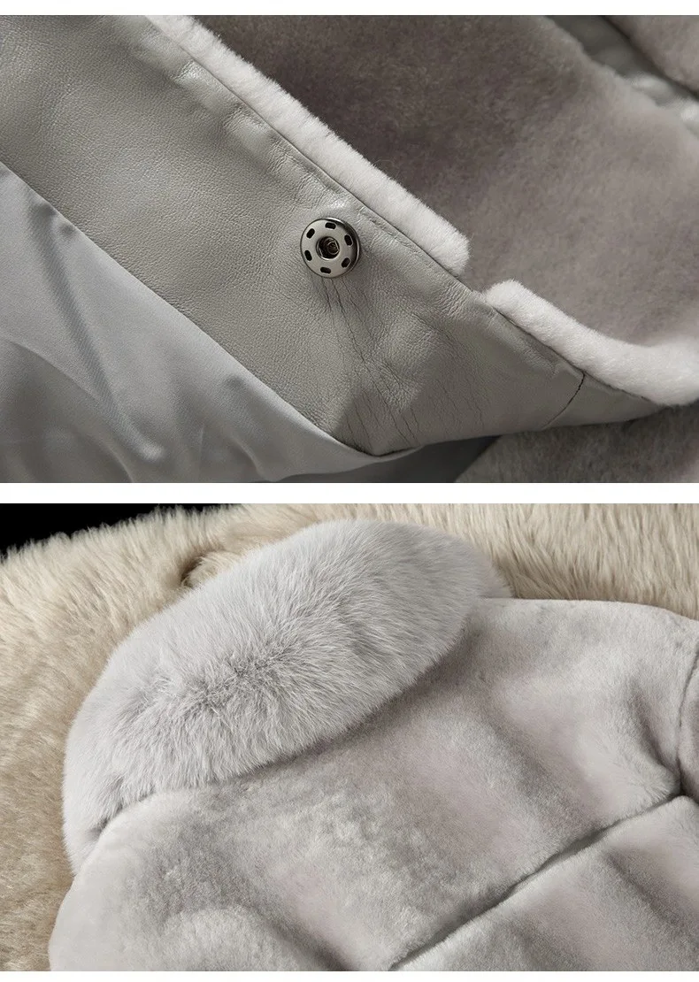 Женская куртка с воротником из лисьего меха, новинка сезона осень-зима 2021, пальто из искусственного меха и шерсти, Женская длинная теплая кожаная верхняя одежда