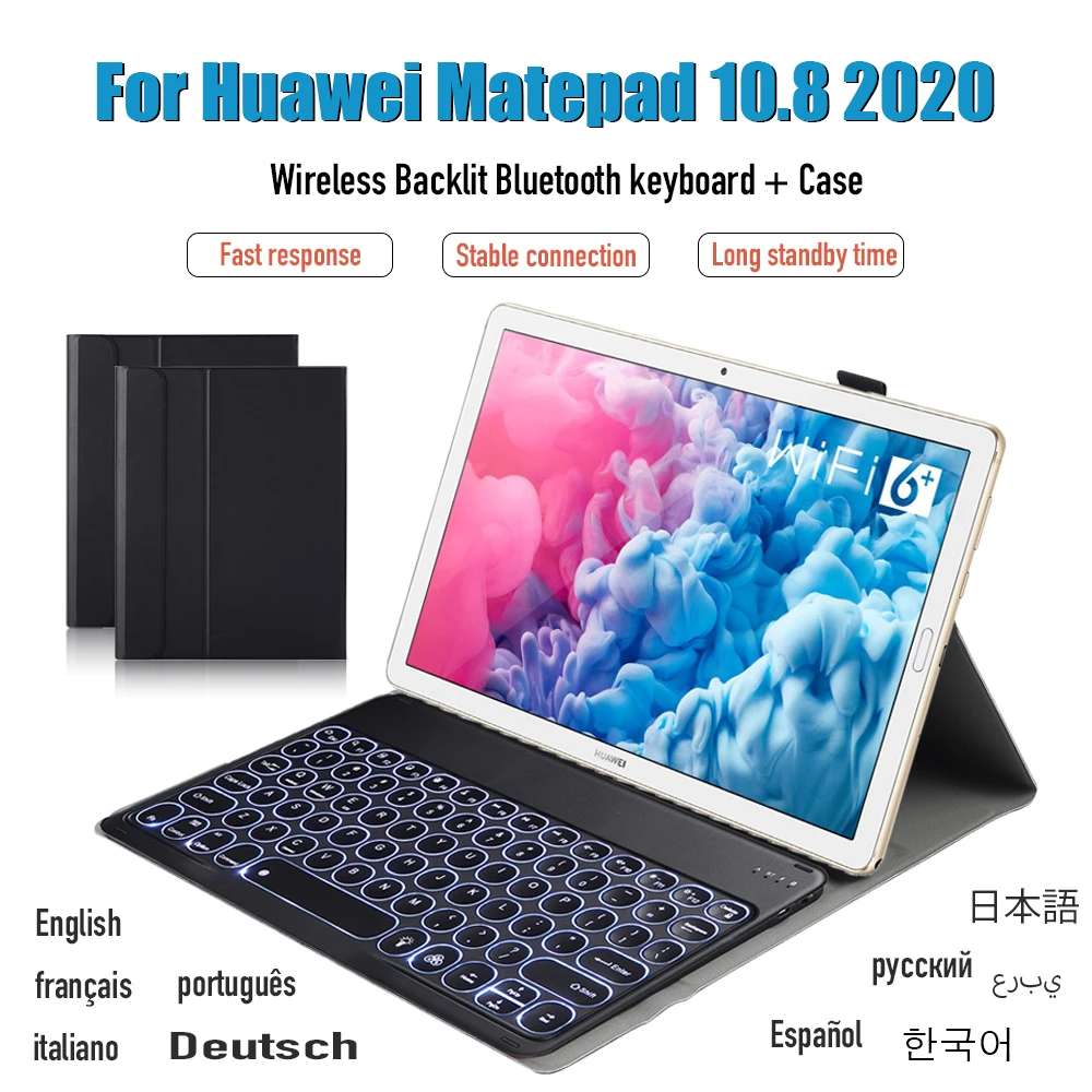 Для Huawei MatePad 2020 Pro 5G 10,8 дюймов Беспроводная Bluetooth клавиатура с подсветкой чехол для планшета MediaPad M6 M5 кожаный чехол