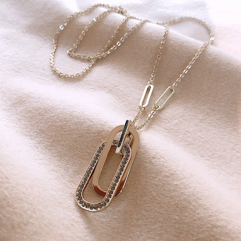 Наименование товара: двойное кольцо, подвеска, осенняя цепочка для зимнего свитера, длинное простое корейское ожерелье для женщин, новинка 2021, геометрические круглые аксессуары, ювелирные изделия