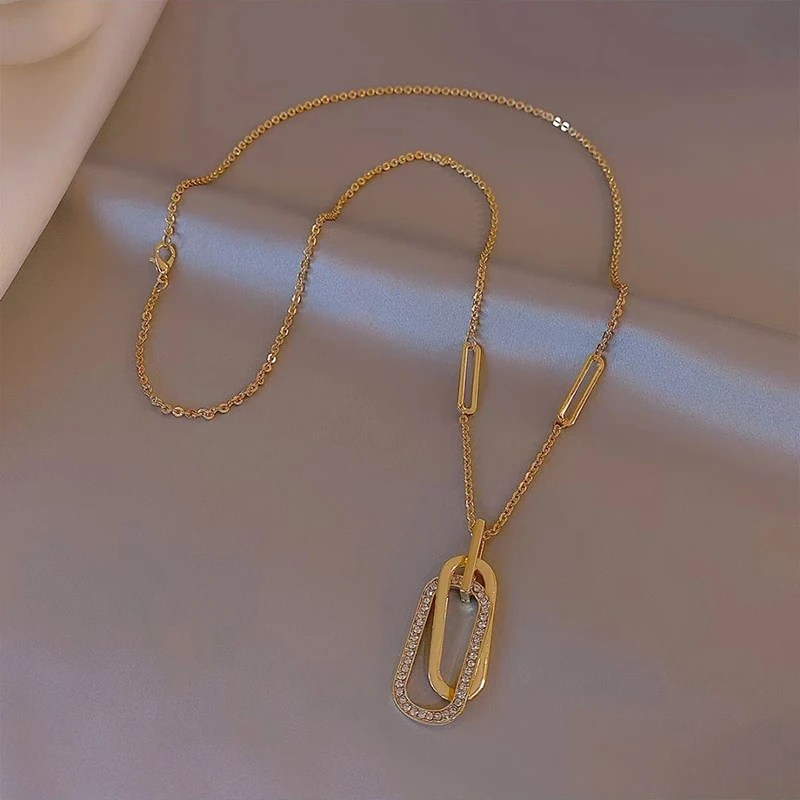 Осенняя подвеска в виде двух колец, длинное простое корейское ожерелье, женское Новое геометрическое кольцо, аксессуары, ювелирные изделия, 2021