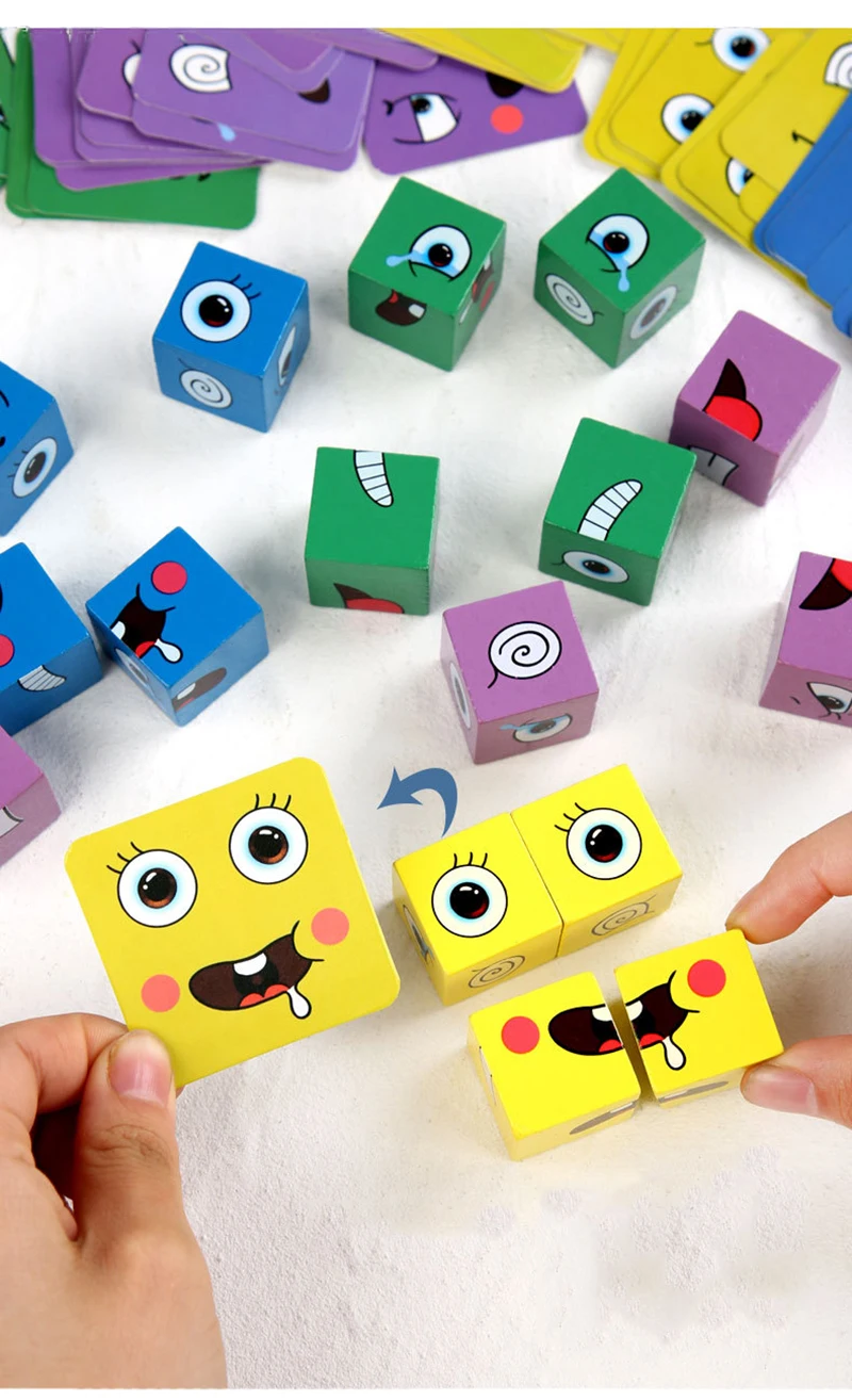 Детский деревянный пазл для младенцев, Монтессори, развивающая головоломка с изменением лица, подходящая логика, игры, геометрический пазл