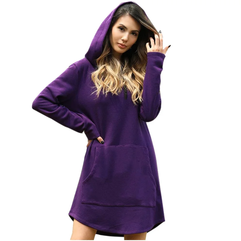 Женские однотонные длинные толстовки 2021, Модные свободные толстов...