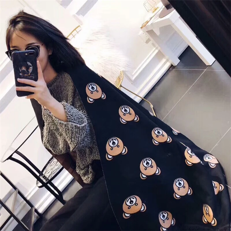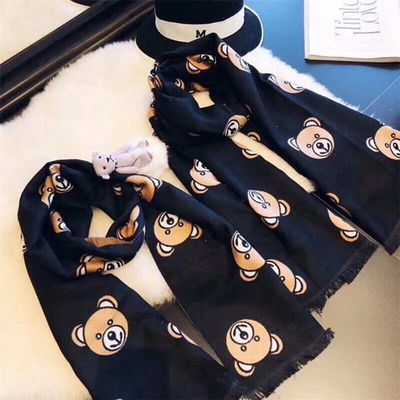 Модный зимний классический кашемировый женский теплый плотный шарф с медведем для родителей и детей многофункциональная шаль высокого качества