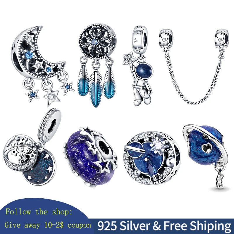 Шармы-подвески женские из серебра 925 пробы в виде астронавта, звез...